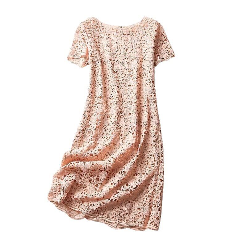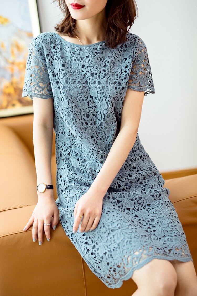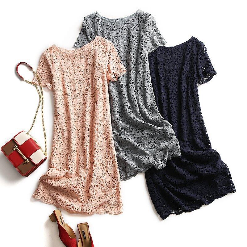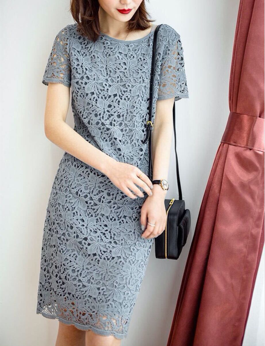 シンプルでカジュアルなシルエットのレースワンピース。