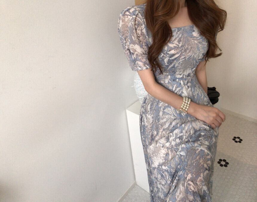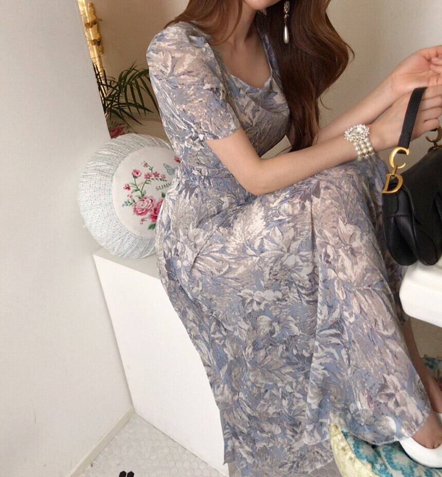 レトロなフローラルプリントがお洒落なロングドレス。