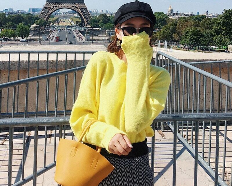 パッと目を惹く鮮やかなイエローカラーが暗くなりがちな秋冬コーデを明るくしてくれます。