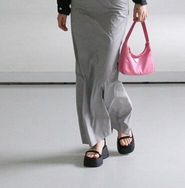 トレンド感たっぷりの厚底と華奢なストラップがおしゃれなナローサンダルです。