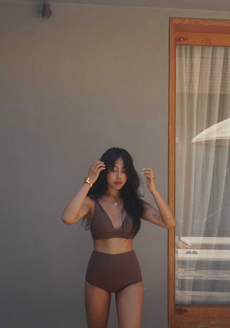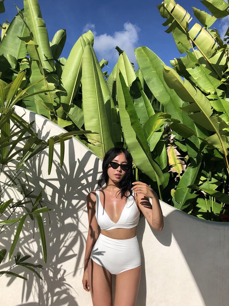 ハイウエストパンツの組み合わせでトレンドのスタイルが叶うスイムウェアです。