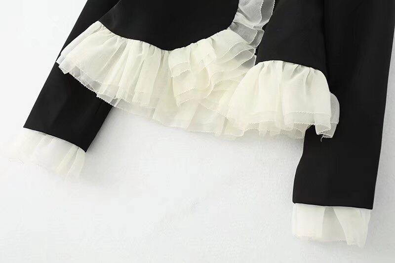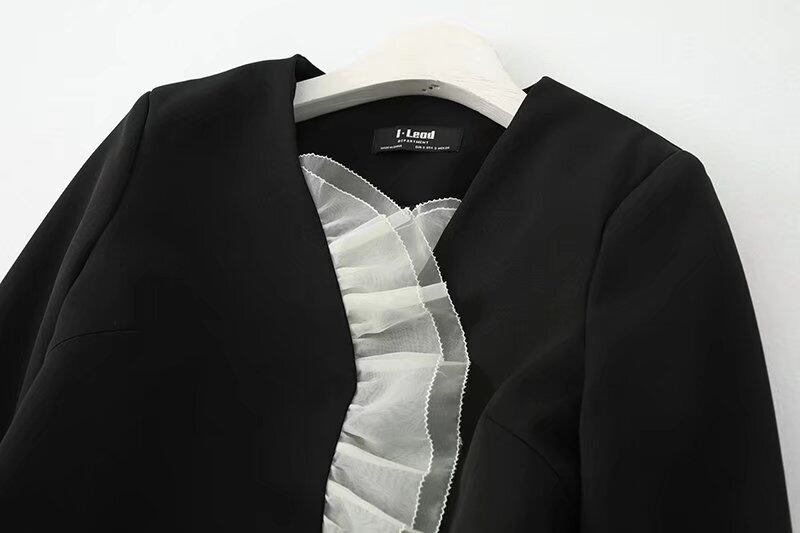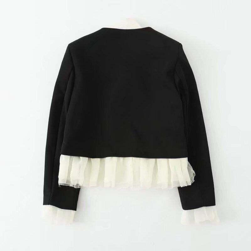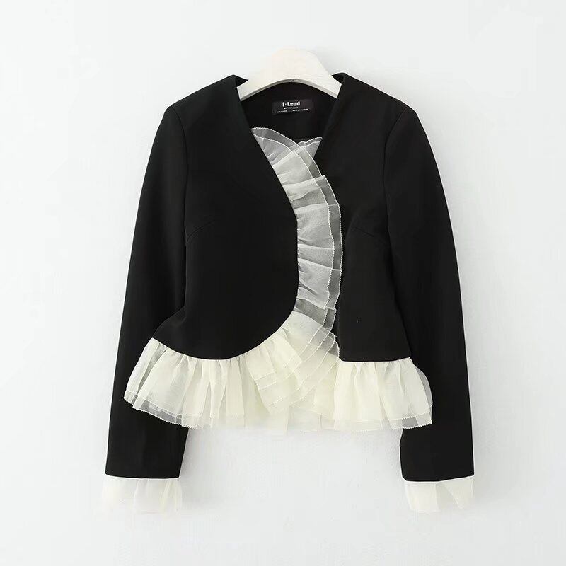 アウター ジャケット 袖あり 長袖 襟なし ストレート シフォン フリル かわいい 大人可愛い おしゃれ アジアン エキゾチック 大人可愛い ラブリー キュート ガーリー 無地 春 秋 10代 20代 オフィス ビジネス OL 通勤 韓国系 オルチャン ファッション S M L