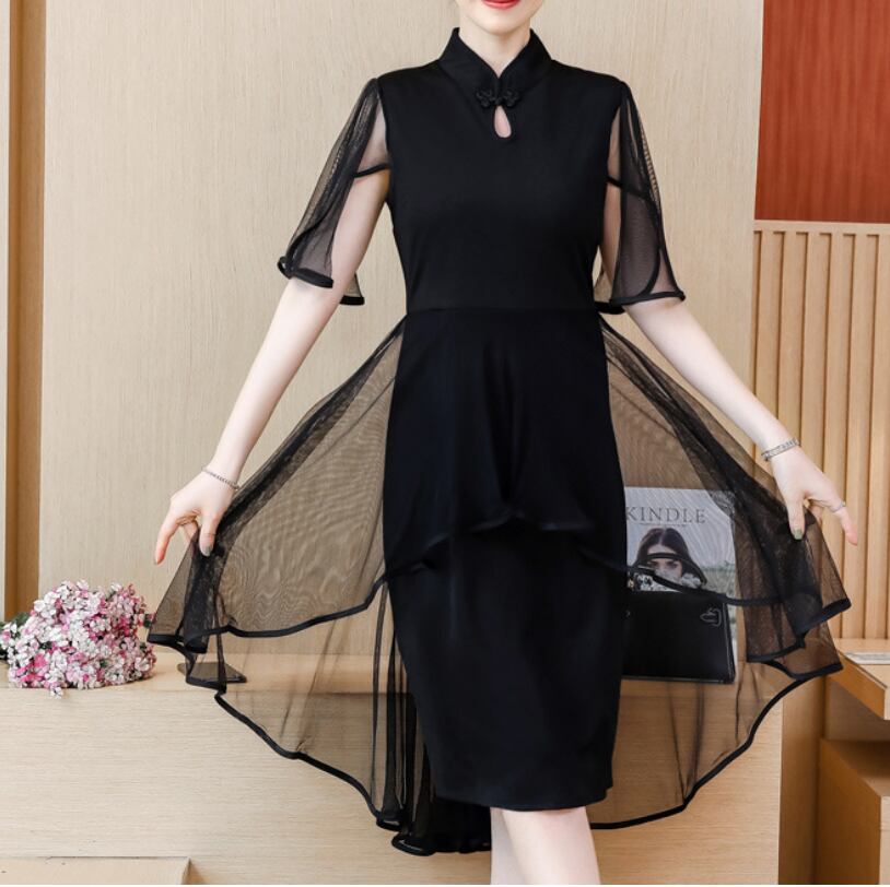ドレス おすすめ おしゃれ お洒落 激安 安い 送料無料 プチプラ パーティードレス お呼ばれ ドレス フォーマル ドレス ラウンジ ドレス イブニング ドレス シースルー ドレス スリット ドレス ハイネック ドレス チャイナドレス 膝丈 ボリュームスリーブ ふんわり フリル 韓国 フォーマル 綺麗め 大人上品 シック 同窓会 発表会 卒業式 キャバクラ 20代 30代 M L XL 2XL 3XL 4XL 黒 ブラック 大人カラー モノトーン