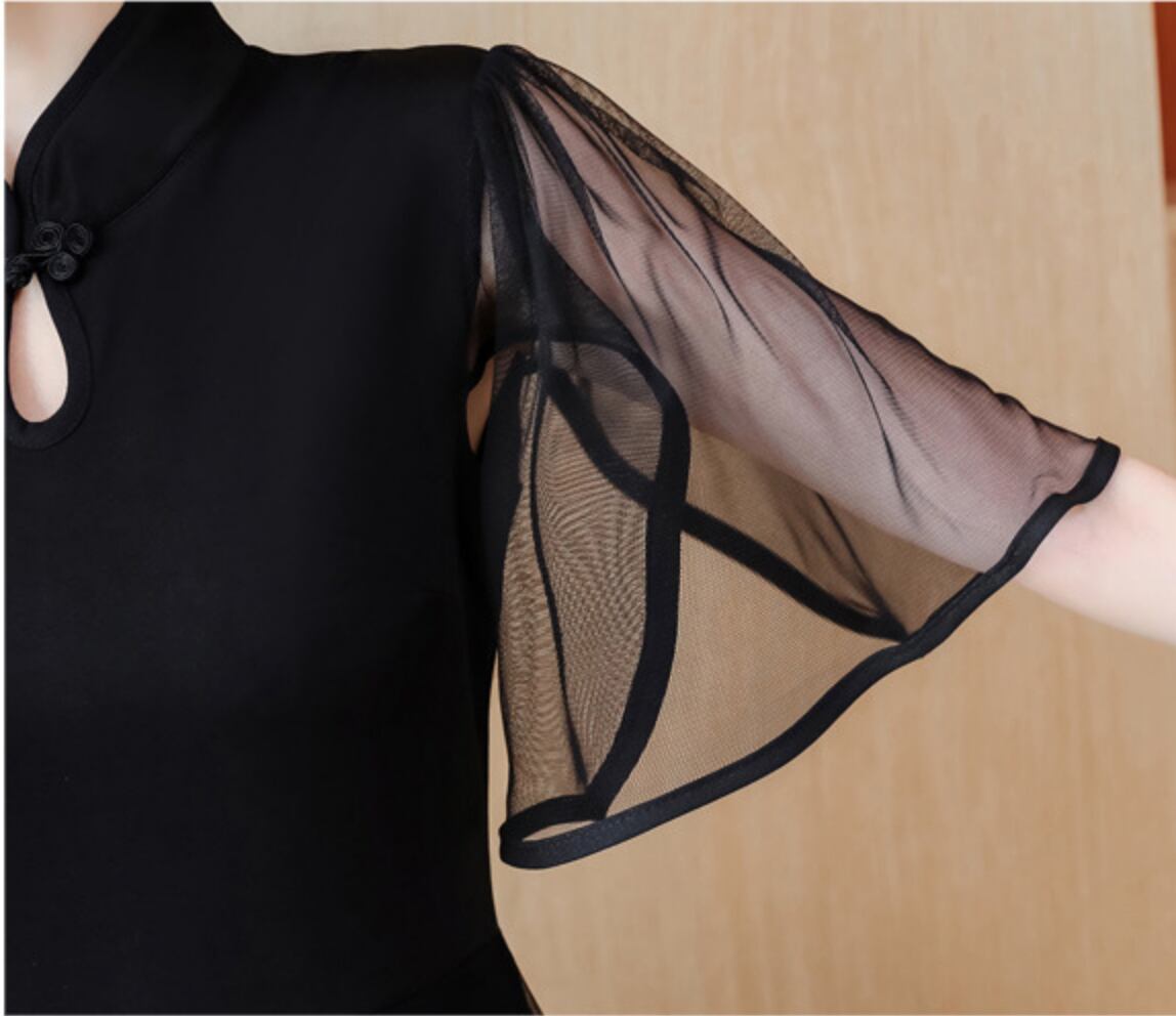 シースルー生地がお洒落なチャイナ風フォーマルミニドレス。