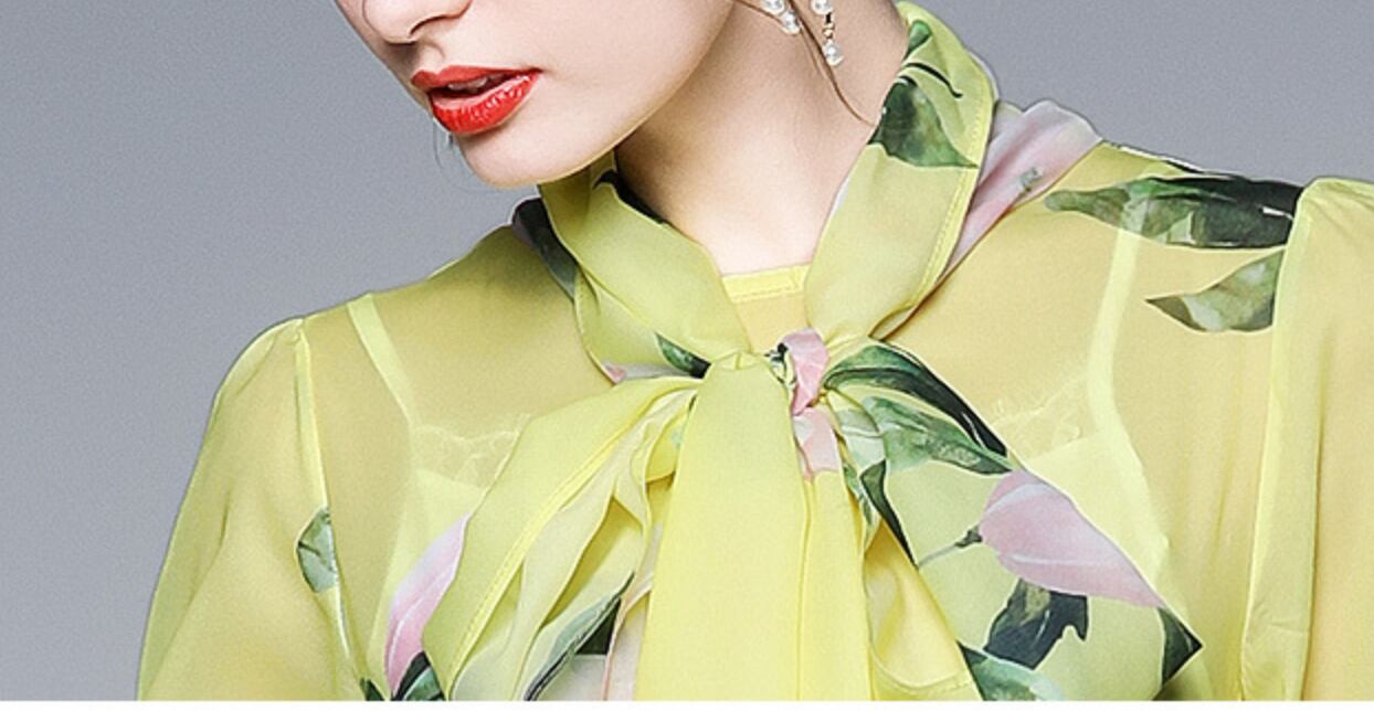 ワンピース 上着 人気 おすすめ おしゃれ お洒落 激安 安い 送料無料 プチプラ ブラウス 長袖 ロング ハイネック 柄 花柄 リボン シースルー シアー 透け ポリエステル プリント 可愛い かわいい 韓国 きれいめ 高品質 大人 上品 フォーマル 春 スプリング 結婚式 レディース 女性用 20代 30代 S M L XL 2XL 黄色 イエロー 桃色 ピンク パステルカラー 春カラー デート フェミニン