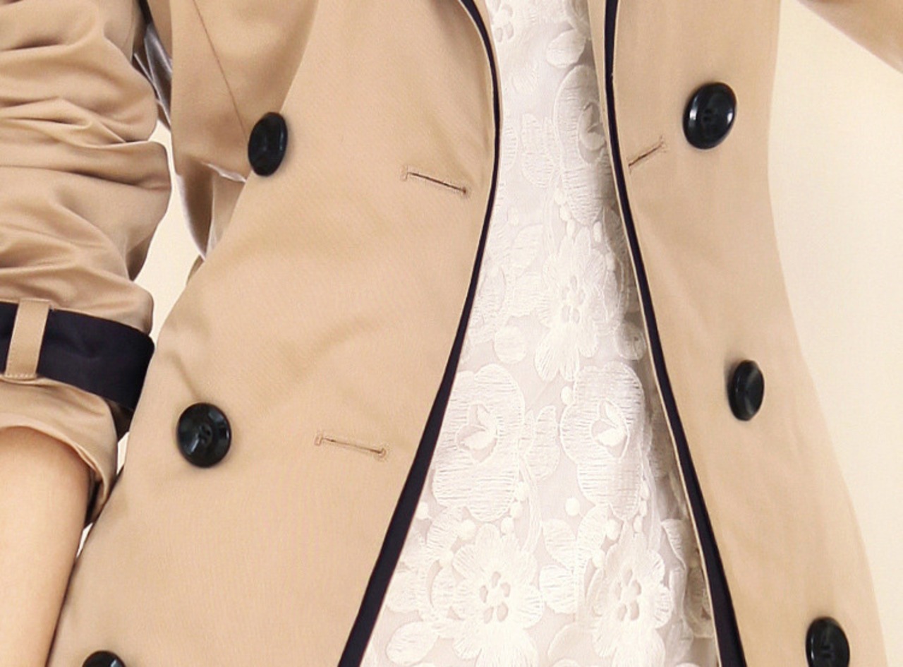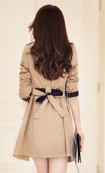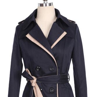 バイカラーの配色がお洒落なダブルフェイスのトレンチコート。