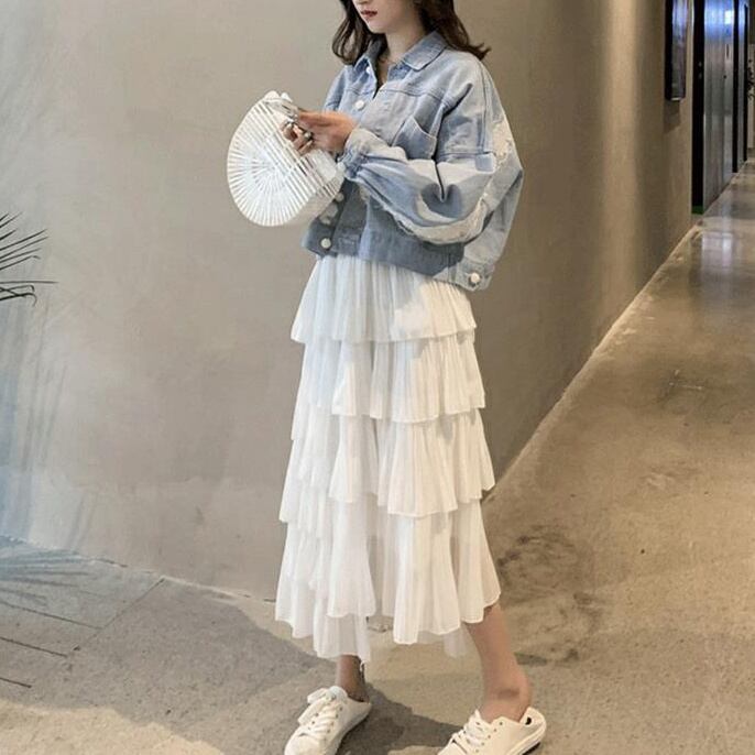ワンピやパンツに合わせれば脚長効果が期待できる1枚です。
