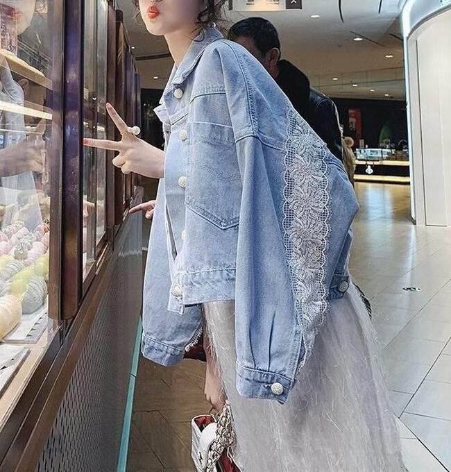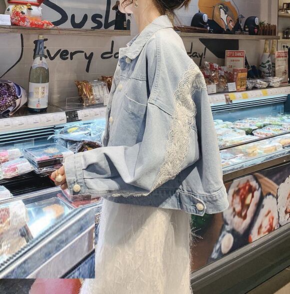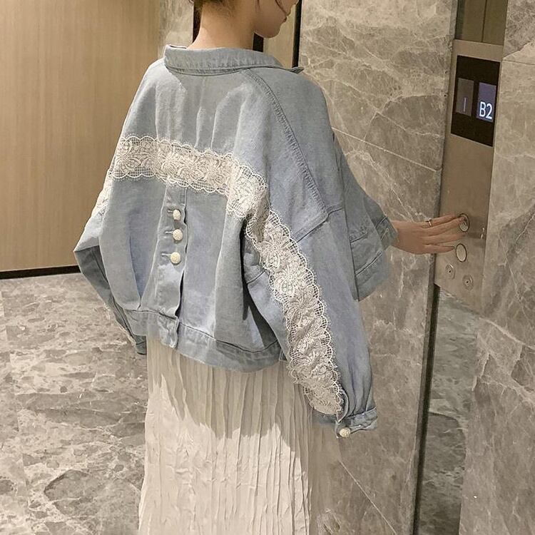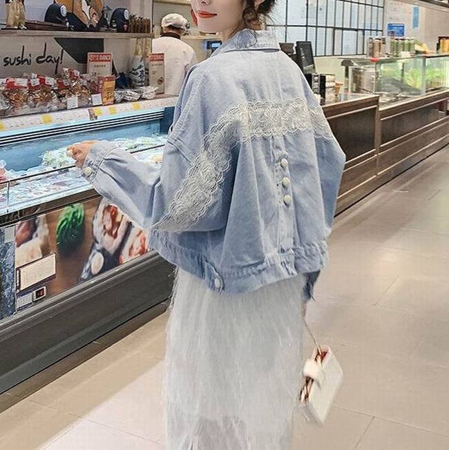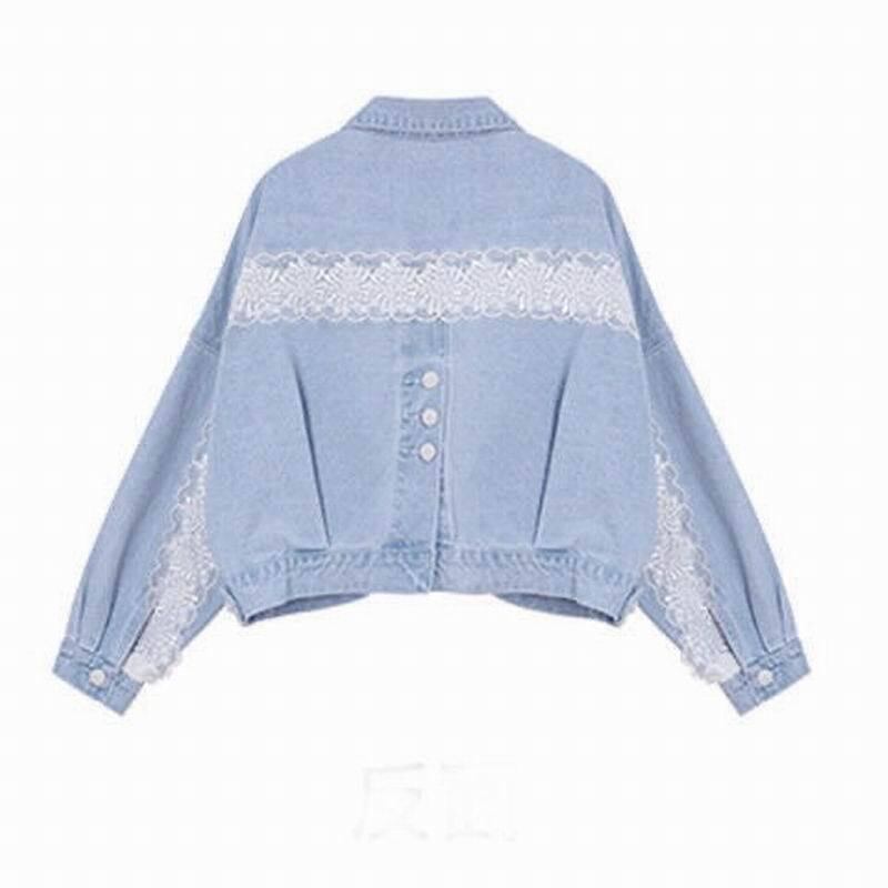 デニムジャケット アウター 上着 ショート丈 襟付き シングルブレスト レース バックシャン バックコンシャス 体型カバー 可愛い かわいい きれいめ 大人 上品 エレガント 抜け感 こなれ感 シンプル ナチュラル カジュアル フェミニン 春 スプリング 春先 秋 オータム レディース 女性用 ママ 低身長 40代 50代 10代 20代 30代 S 小さいサイズ ゆったり ゆる 青 ライトブルー