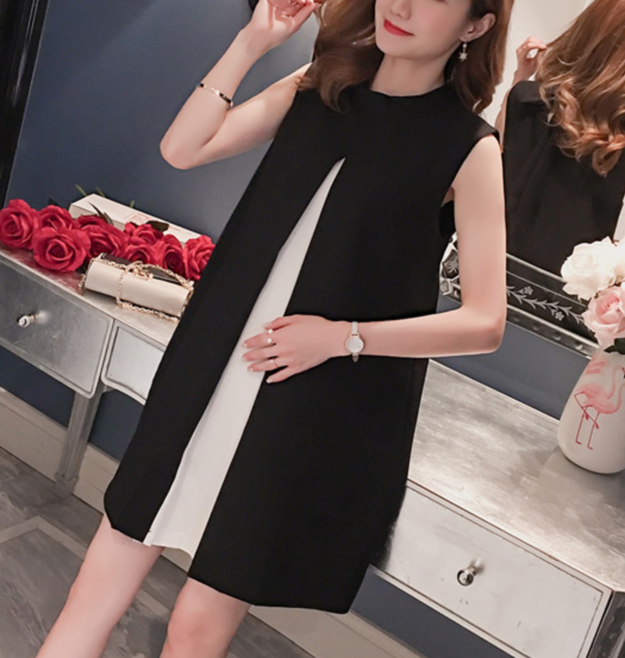 上品でありつつゆったりとしたラインでマタニティウエアとしても活用する一枚。