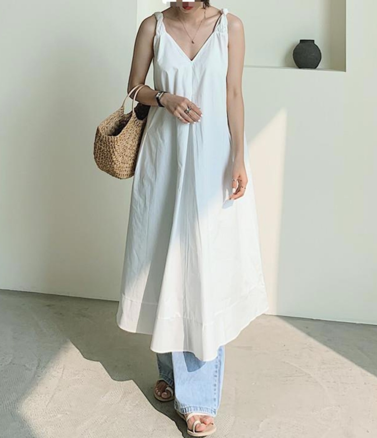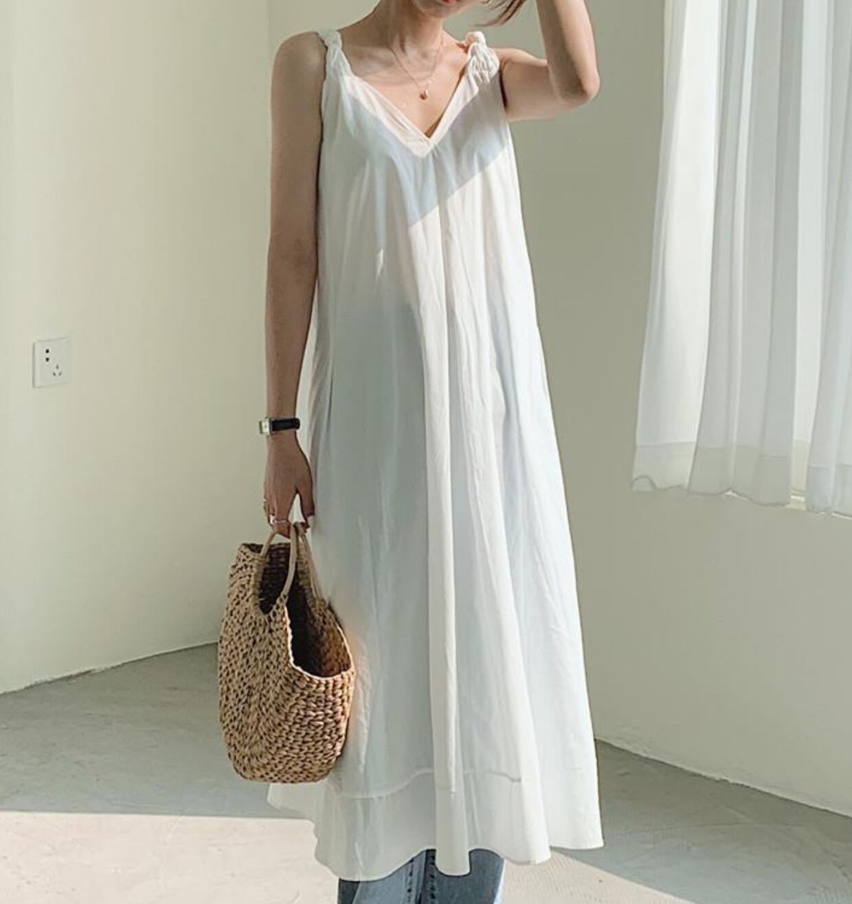 ワンピース 上着 人気 おすすめ おしゃれ お洒落 激安 安い 送料無料 プチプラ 肩出し ノースリーブ Vネック ふんわり オーバーサイズ 無地 ポリエステル 可愛い かわいい 韓国 シンプル カジュアル 大人 上品 春 スプリング サマー 夏 レディース 女性用 20代 30代 マタニティ 妊婦 S M L XL 白 ホワイト 青 ブルー 水色 スカイブルー パステルカラー 大人カラー 春カラー デート フェミニン