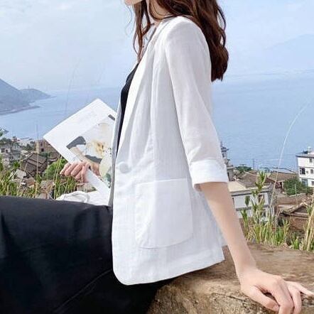 テーラードジャケット アウター 上着 ミドル丈 無地 襟付き七分袖 リネンライク 薄手 可愛い かわいい きれいめ 大人 上品 エレガント 抜け感 こなれ感 シンプル ナチュラル カジュアル フェミニン スタイリッシュ 春 スプリング 春先 ビジネス スーツ 秋 オータム レディース 女性用 ママ 低身長 40代 50代 10代 20代 30代 S 3XL 4XL 小さいサイズ 大きいサイズ ゆる 白 ホワイト 黒 ブラック 桃色 ピンク くすみカラー 春カラー 秋カラー