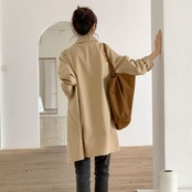 ミディアム丈のマニッシュステンカラーコートです。