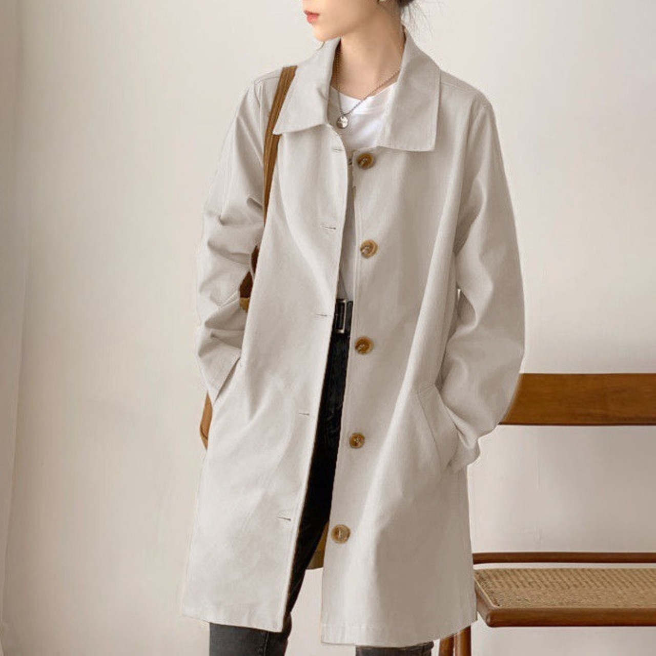 ステンカラーコート コート オーバー コート ロングコート ミドル丈 長袖 マニッシュ べっ甲ボタン ボタン 無地 温かい 防寒 防風 大人 上品 おしゃれ ファッション こなれ感 ルーズ 冬 ウィンター 秋 オータム カジュアル お出かけ デート 通勤 レディース 女性用 ママ 40代 20代 30代 S M L XL 灰色 グレー 茶色 ブラウン 大人カラー 秋カラー カラバリ アプリコット