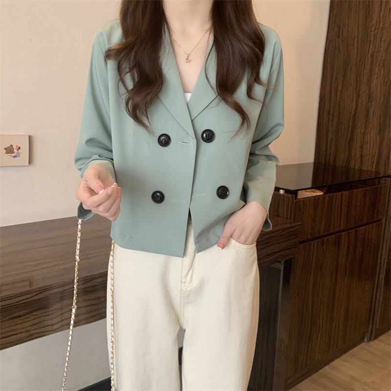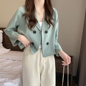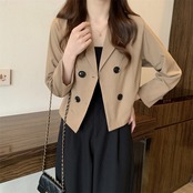 大きめボタンが映えるショート丈のテーラードジャケットです。