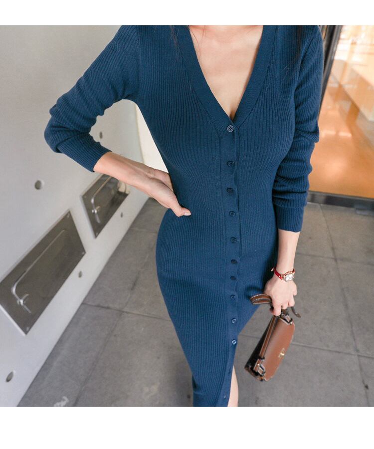 ワンピース 上着 人気 おすすめ おしゃれ お洒落 激安 安い 送料無料 プチプラ 長袖 ロング Vネック タイト 膝丈 スリット 無地 ポリエステル リブニット 可愛い かわいい 韓国 シンプル カジュアル きれいめ 大人 上品 フォーマル 秋 オータム 冬 ウィンター ストリート レディース 女性用 20代 30代 S M L XL 黒 ブラック 青 ブルー 大人カラー モノトーン 秋カラー デート フェミニン