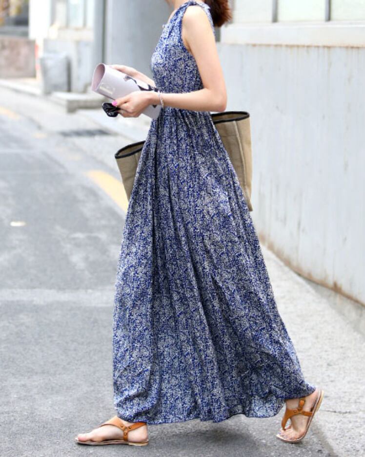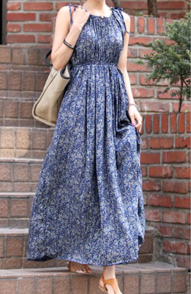 ワンピース 上着 人気 おすすめ おしゃれ お洒落 激安 安い 送料無料 プチプラ 肩出し ノースリーブ ラウンドネック 丸首 ふんわり オーバーサイズ 柄 花柄 ポリエステル プリント 着痩せ 体型カバー 可愛い かわいい 韓国 シンプル カジュアル きれいめ レディース 女性用 20代 30代 マタニティ 妊婦 S M L XL 2XL 3XL 青 ブルー くすみカラー 大人カラー 春カラー デート フェミニン