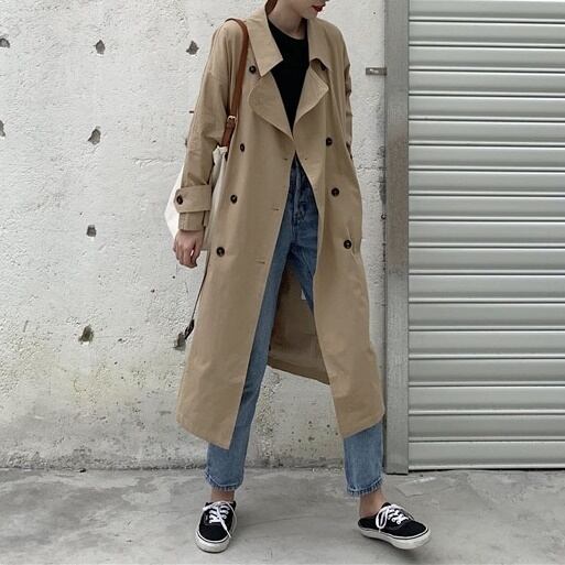 ドロップショルダーがこなれ感のあるトレンチコートです。