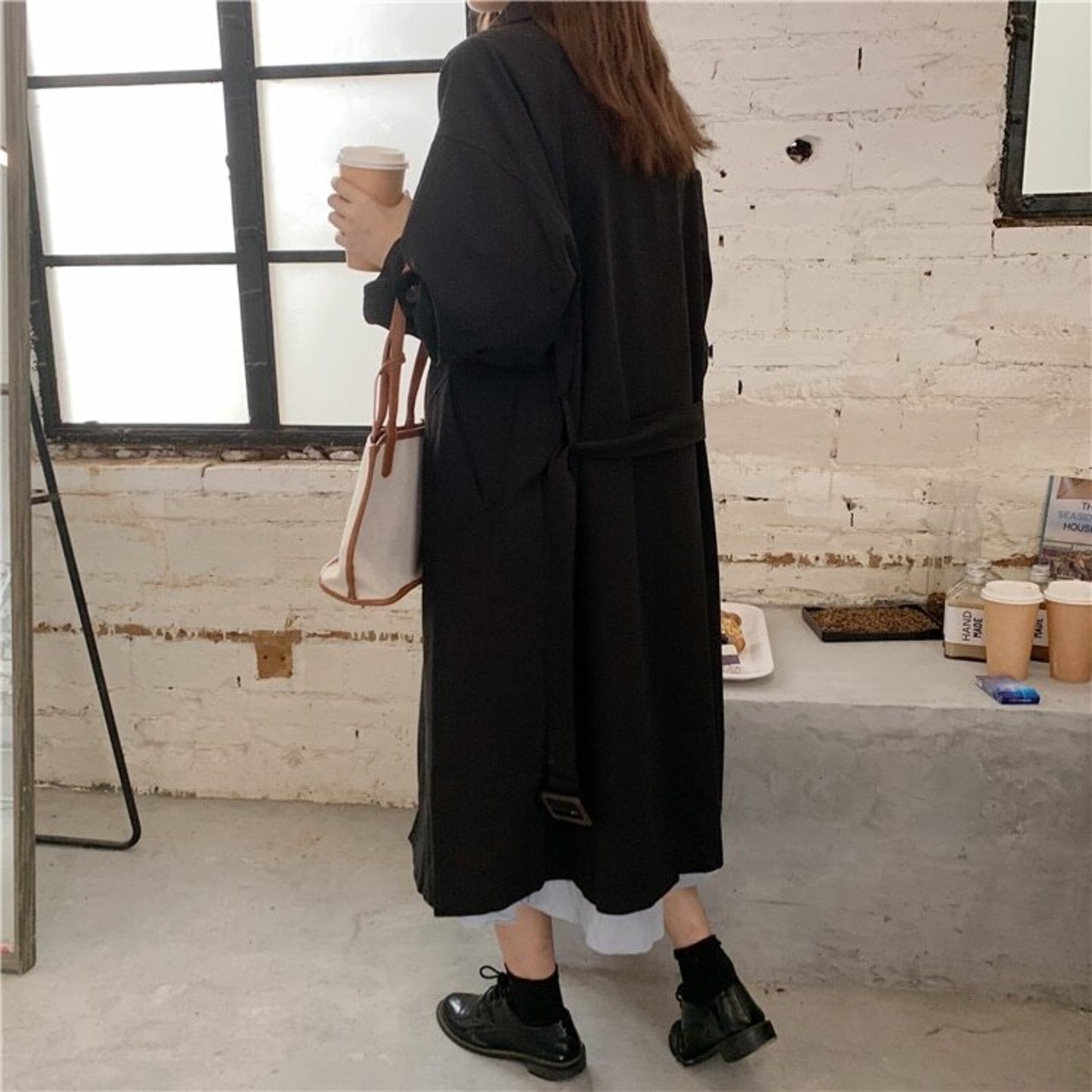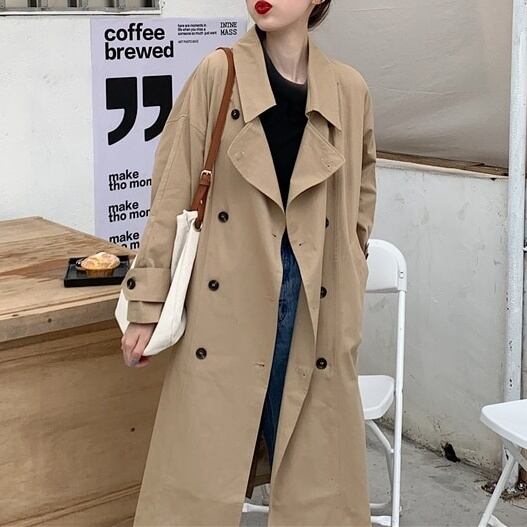 コート アウター ロング トレンチ ドロップショルダー モノトーン ガウンコート クラシカル マニッシュ ミディアム丈 袖あり 長袖 ポケット付き アウター 羽織り 大人可愛い きれいめ シンプル カジュアル おしゃれ レトロ こなれ感 ラフ エレガント 無地 春 秋 冬 10代 20代 30代 40代 レディース オフィス OL 通勤 学生 通学 デート お出かけ 女子会 リゾート 旅行 着回し 普段使い 韓国系 オルチャン ファッション コーデ スタイル モテ 体型カバー カーキ ブラック
