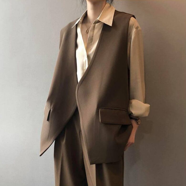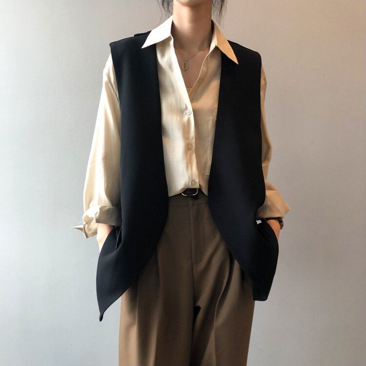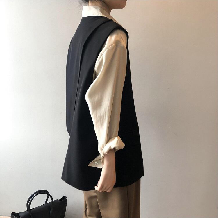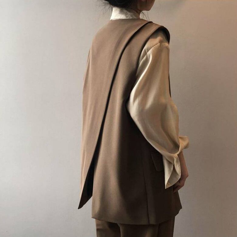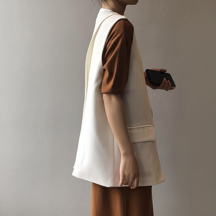 アウター 上着 ジレ ベスト ノーカラーベスト チュニック丈 無地 ボタンレス バックシャン バックコンシャス 体型カバー 肌見せ きれいめ 大人 上品 エレガント 抜け感 こなれ感 シンプル ナチュラル カジュアル フェミニン 春 スプリング 春先 冬 ウィンター 秋 オータム レディース 女性用 ママ 低身長 40代 50代 10代 20代 30代 大きいサイズ ゆったり ゆる 白 ホワイト 黒 ブラック 茶色 ブラウン ベイクドカラー