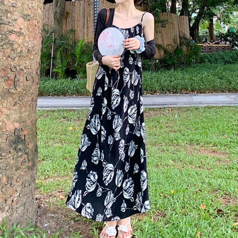 ワンピース 上着 人気 おすすめ おしゃれ お洒落 激安 安い 送料無料 プチプラ 肩出し ノースリーブ ラウンドネック 丸首 ふわふわ ふんわり 柄 花柄 ポリエステル プリント 可愛い かわいい 韓国 シンプル きれいめ 大人 上品 春 スプリング サマー 夏 ストリート レディース 女性用 20代 30代 L XL 2XL 3XL 4XL 黒 ブラック 大人カラー バイカラー モノトーン 春カラー デート フェミニン