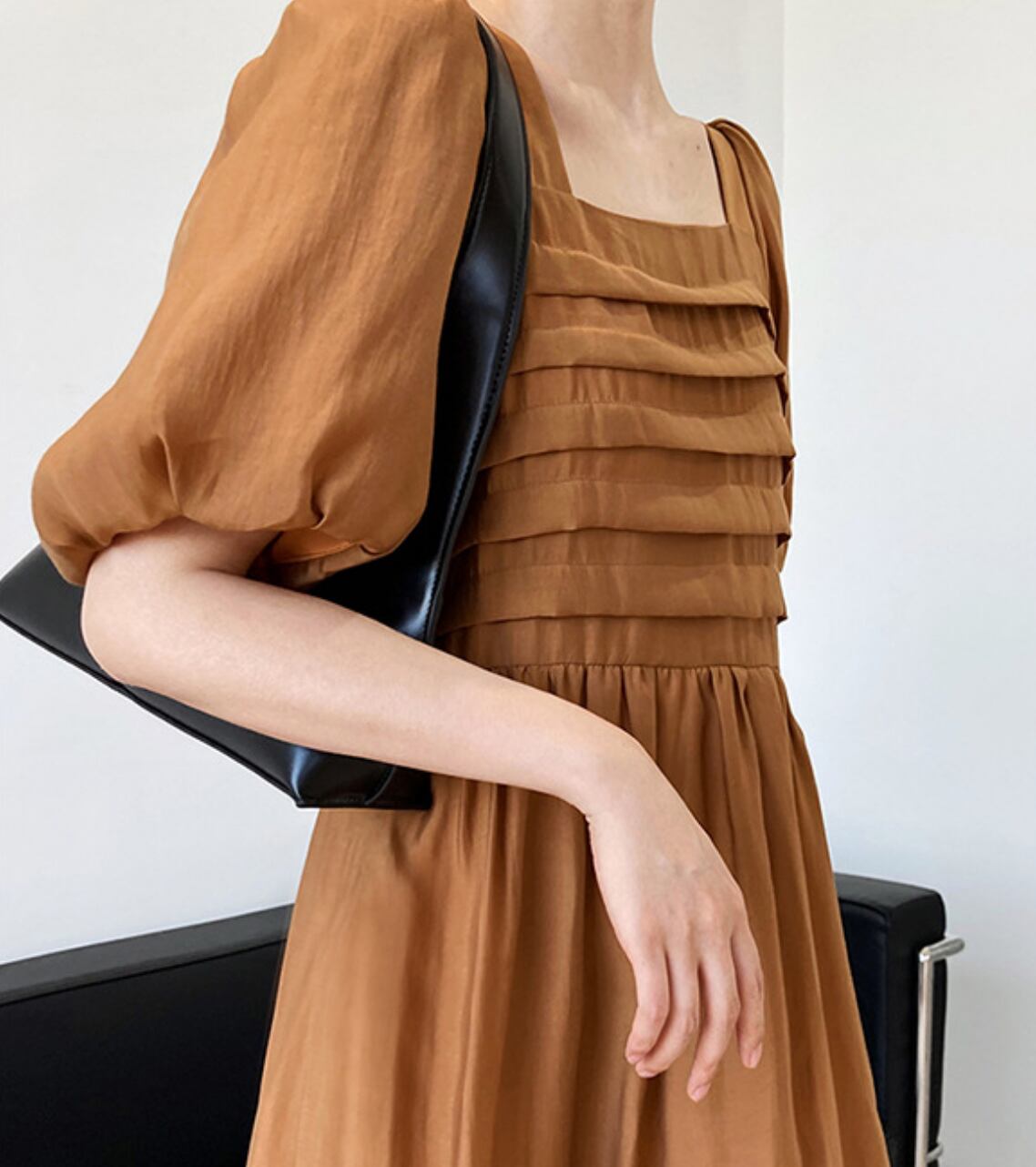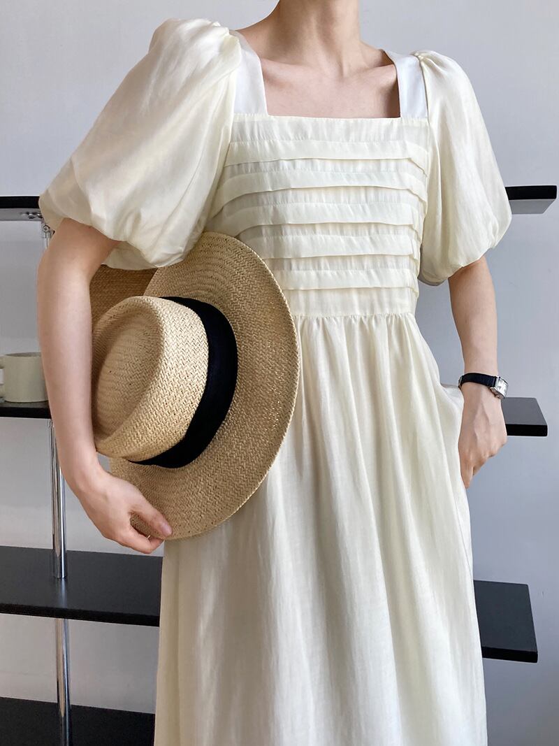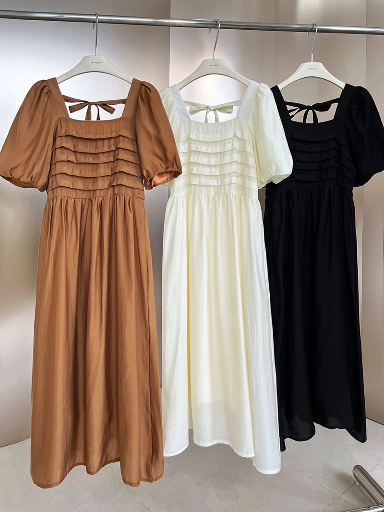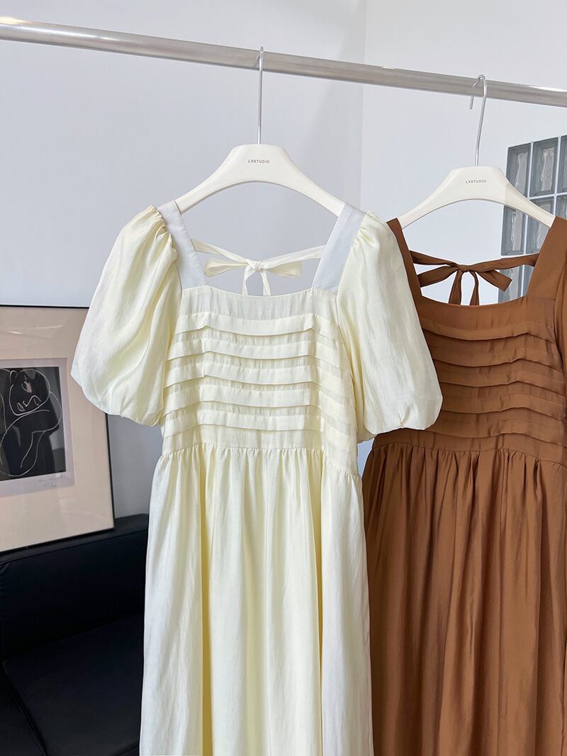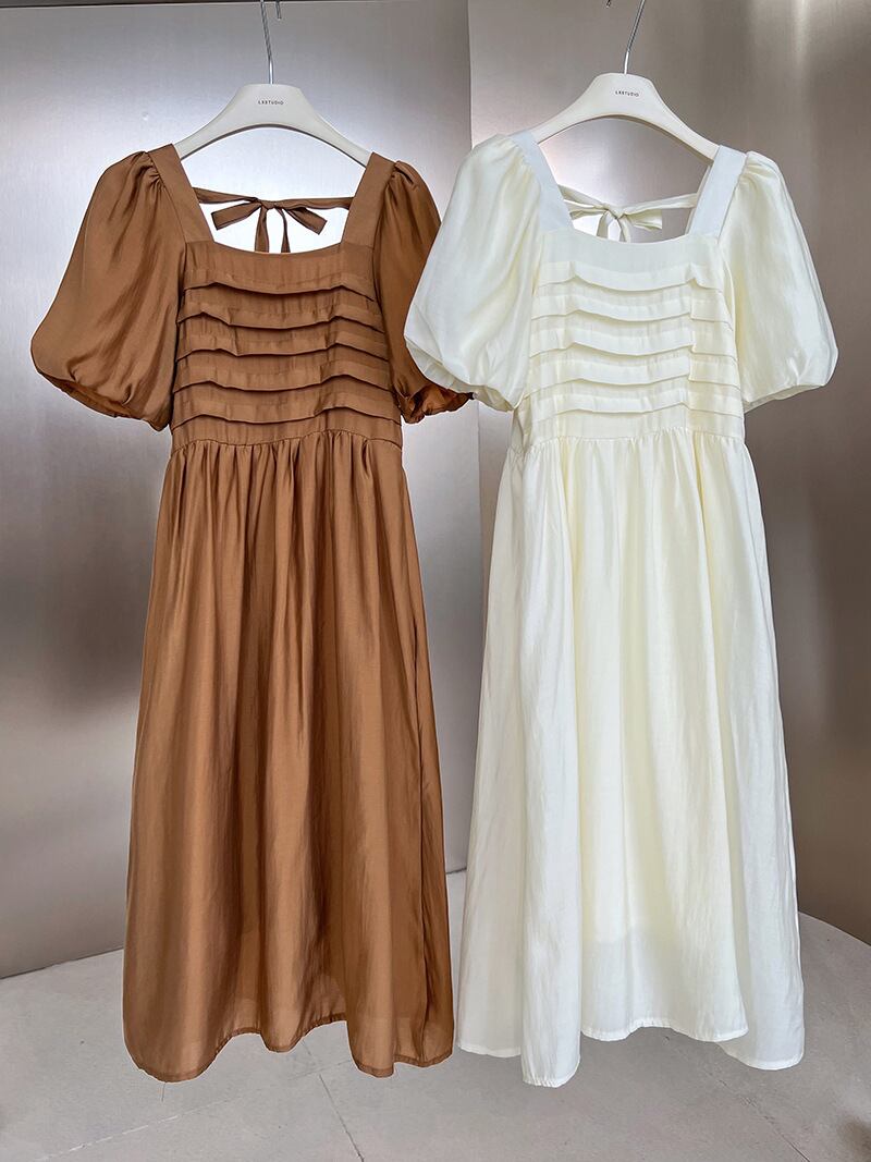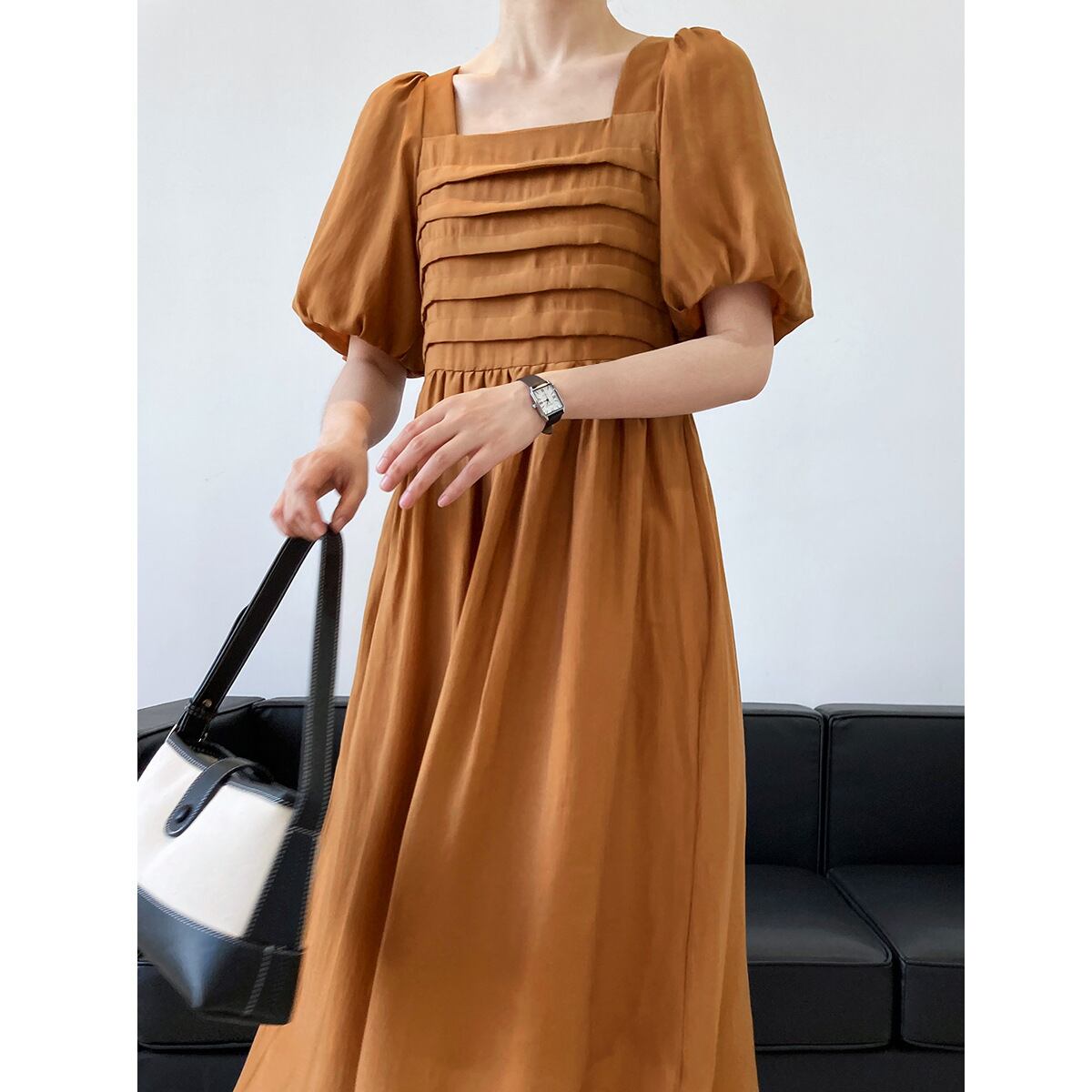 ワンピース 上着 人気 おすすめ おしゃれ お洒落 激安 安い 送料無料 プチプラ 半袖 スクエアネック ふわふわ パフスリーブ ふんわり Aライン 無地 テンセル 可愛い かわいい 韓国 シンプル カジュアル きれいめ 大人 上品 春 スプリング サマー 夏 レディース 女性用 20代 30代 M L 黒 ブラック 茶色 ブラウン ベージュ オフホワイト パステルカラー くすみカラー 大人カラー モノトーン 秋カラー デート フェミニン