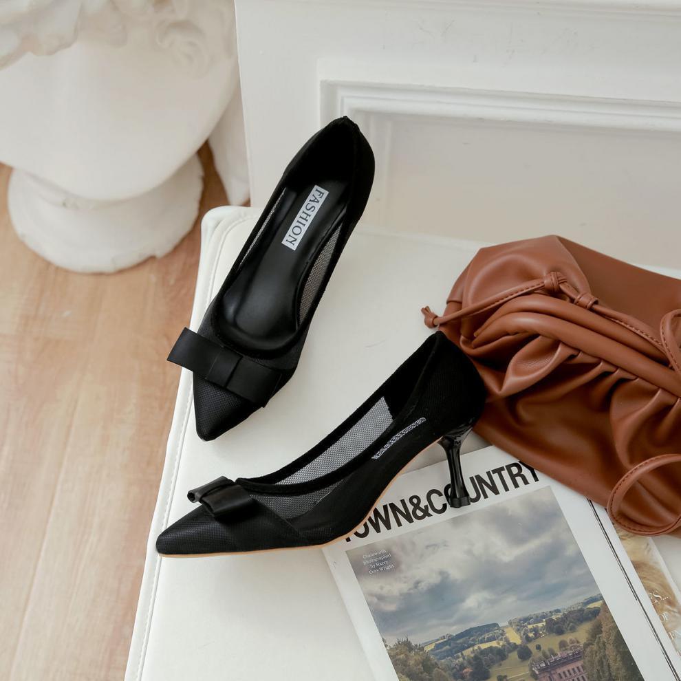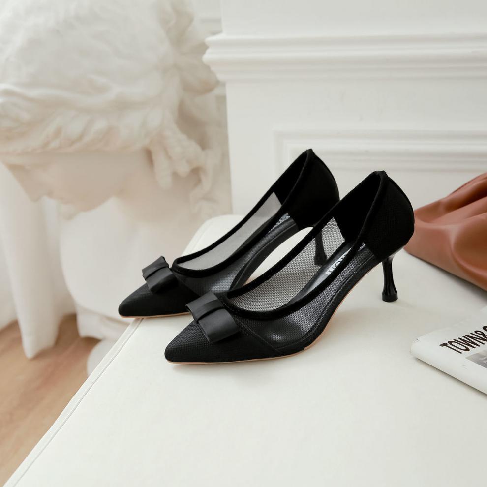 シューズ 靴 ポインテッドトゥ パンプス リボン メッシュ シースルー 透け感 ヒール 6.5cm かわいい 大人可愛い きれいめ シンプル カジュアル 大人 おしゃれ お洒落 かっこいい ガーリー 女っぽ OL 通勤 10代 20代 30代 40代 レディース 女性用 学生 デート お出かけ 女子会 デイリー 普段使い お揃い 韓国 韓国系 オルチャン ファッション コーデ スタイル モテ プチプラ 激安 送料無料 トレンド インスタ映え ブラック 黒