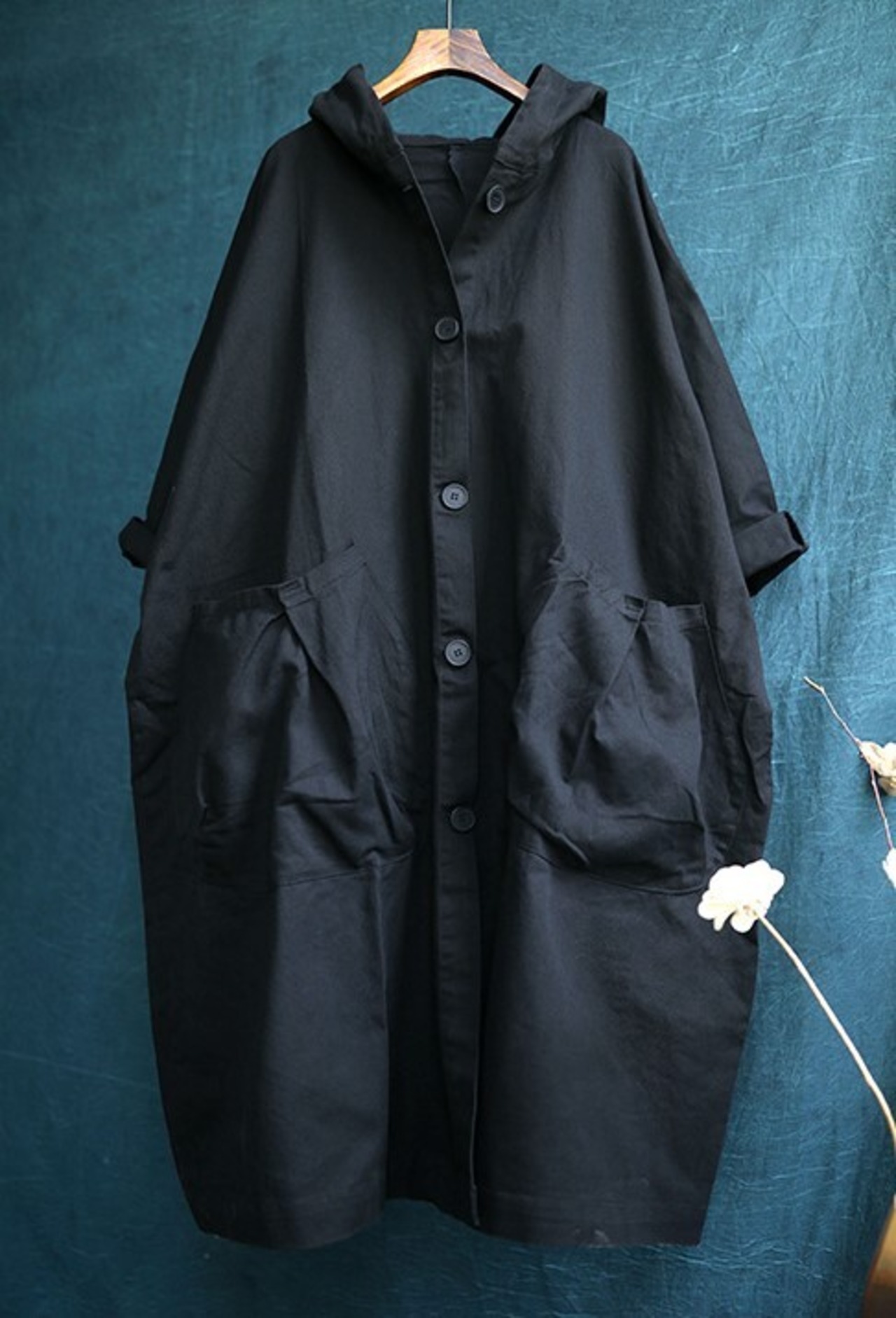 ワイドシルエットがメンズライクな着こなしも叶うフード付きコート。