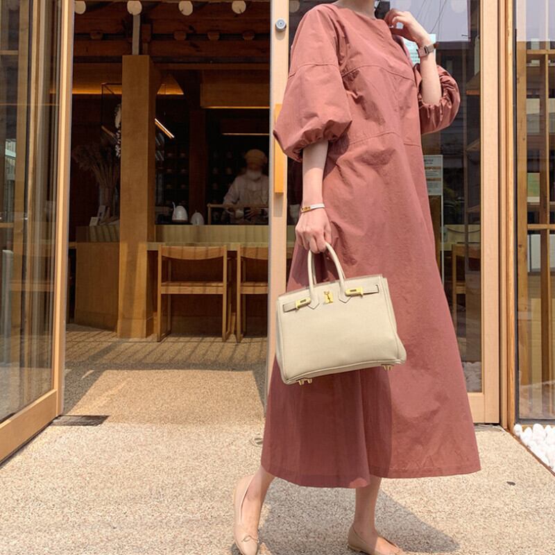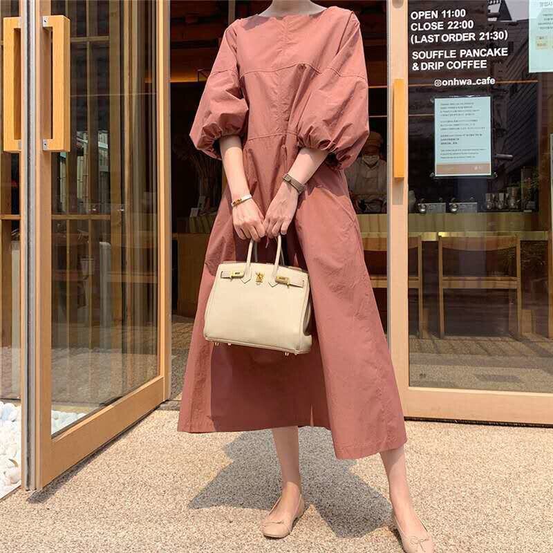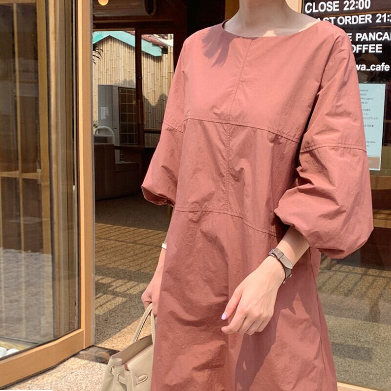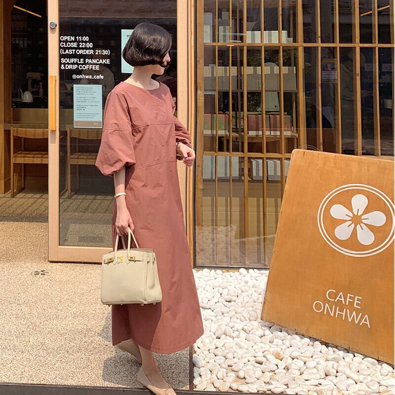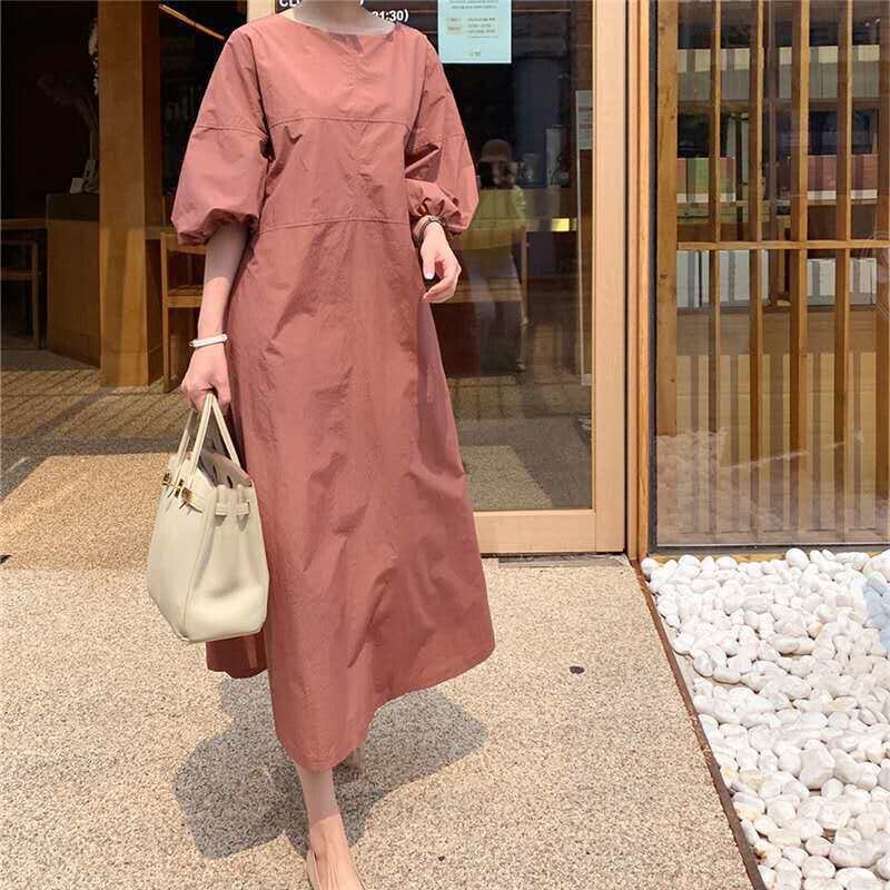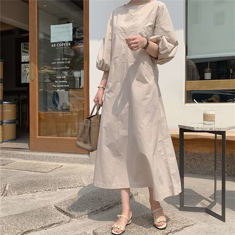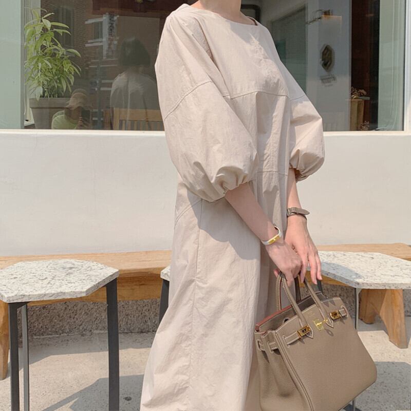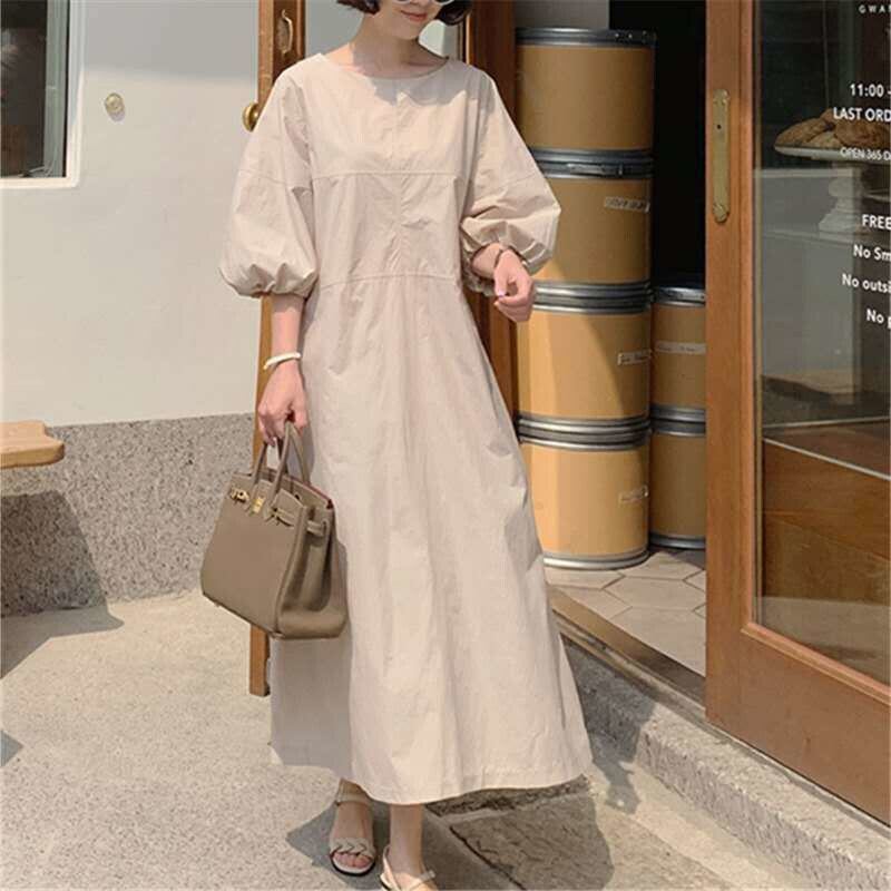 ワンピース ロング丈 袖あり 7分袖 七分袖 長袖 ボリューム袖 ランタンスリーブ かわいい 大人可愛い シンプル カジュアル 大人 上品 おしゃれ かっこいい レトロ 大人女子 ラフ 無地 春 秋 10代 20代 30代 40代 レディース 学生 通学 デート お出かけ 女子会 休日 リゾート 旅行 着回し 普段使い 重ね着 韓国系 オルチャン ファッション コーデ スタイル モテ 体型カバー トレンド XS S M L XL ベージュ テラコッタ 秋カラー