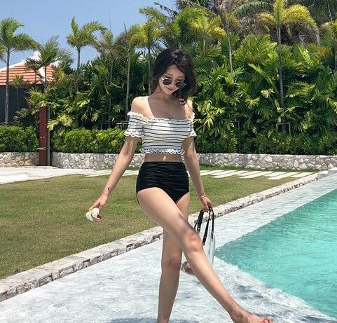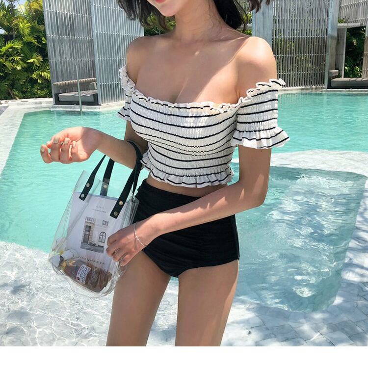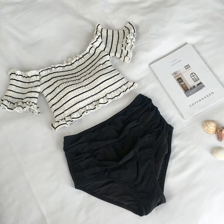 カジュアルガーリーで可愛らしさを兼ね備えたオフショルビキニ。
