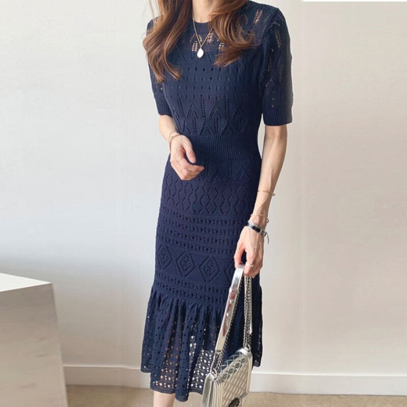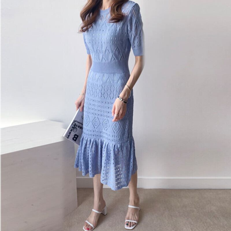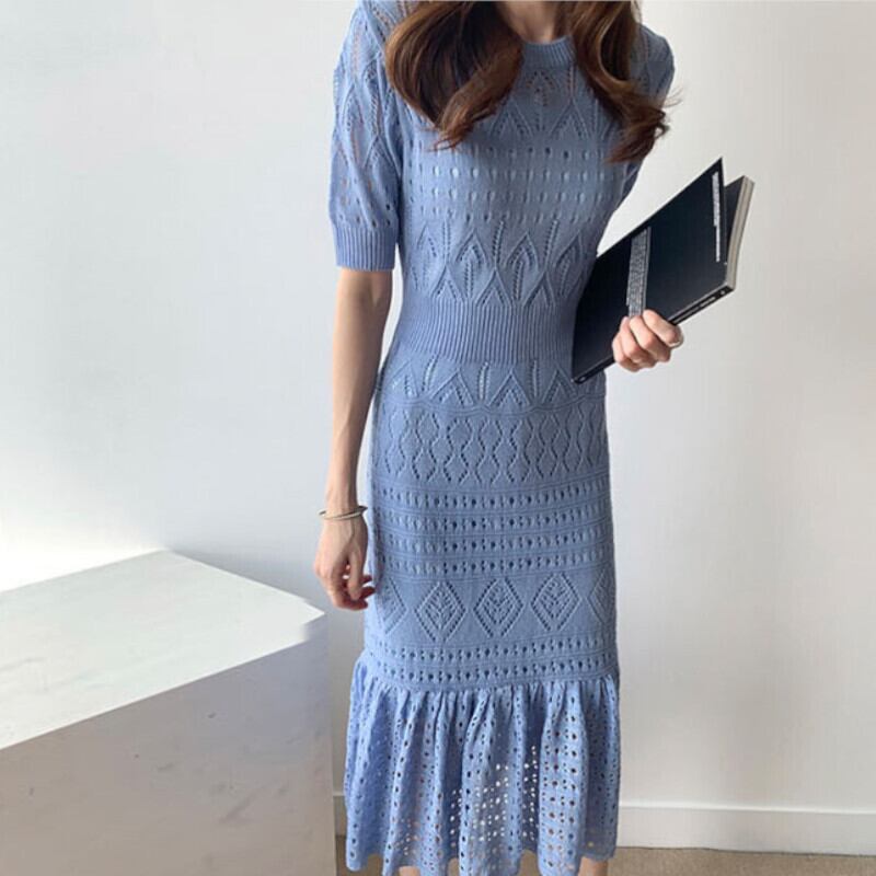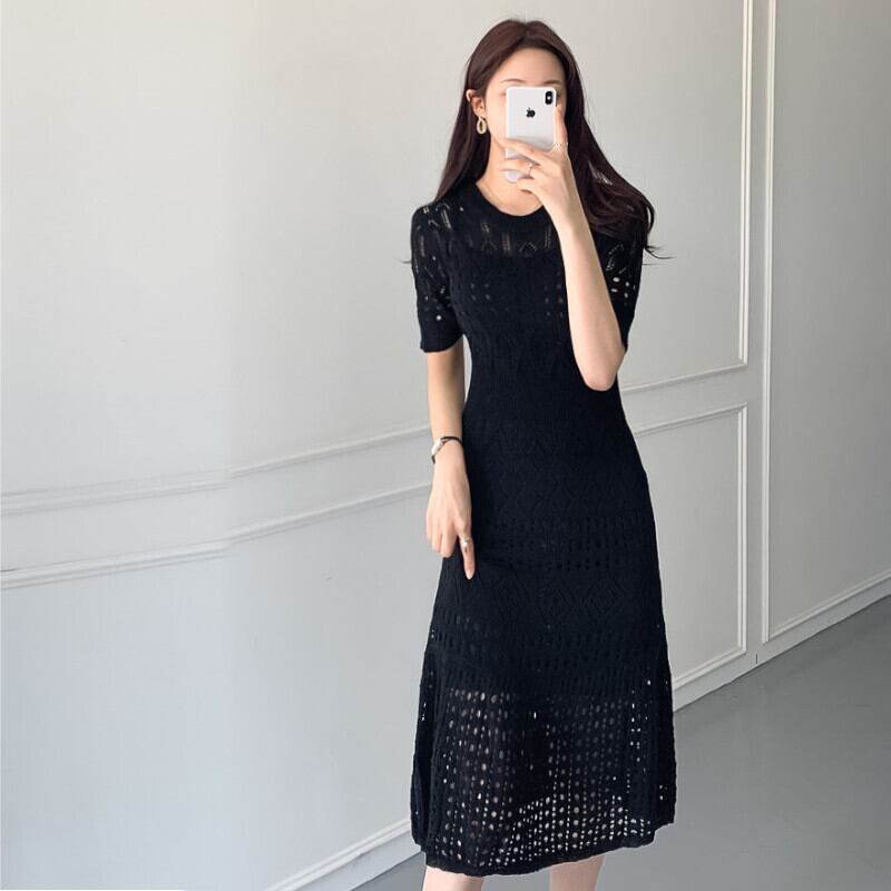 ワンピース ニットソー 膝下 ロング丈 袖あり 半袖 フレンチスリーブ Aライン マーメイド 透け感 大人可愛い きれいめ シンプル カジュアル 大人 上品 おしゃれ かっこいい レトロ 大人女子 ラフ エレガント 春 夏 10代 20代 30代 40代 レディース デート お出かけ 女子会 パーティー 韓国系 オルチャン ファッション コーデ スタイル モテ 体型カバー トレンド ワンサイズ 黒 ブラック ベージュ ライトブルー ネイビー