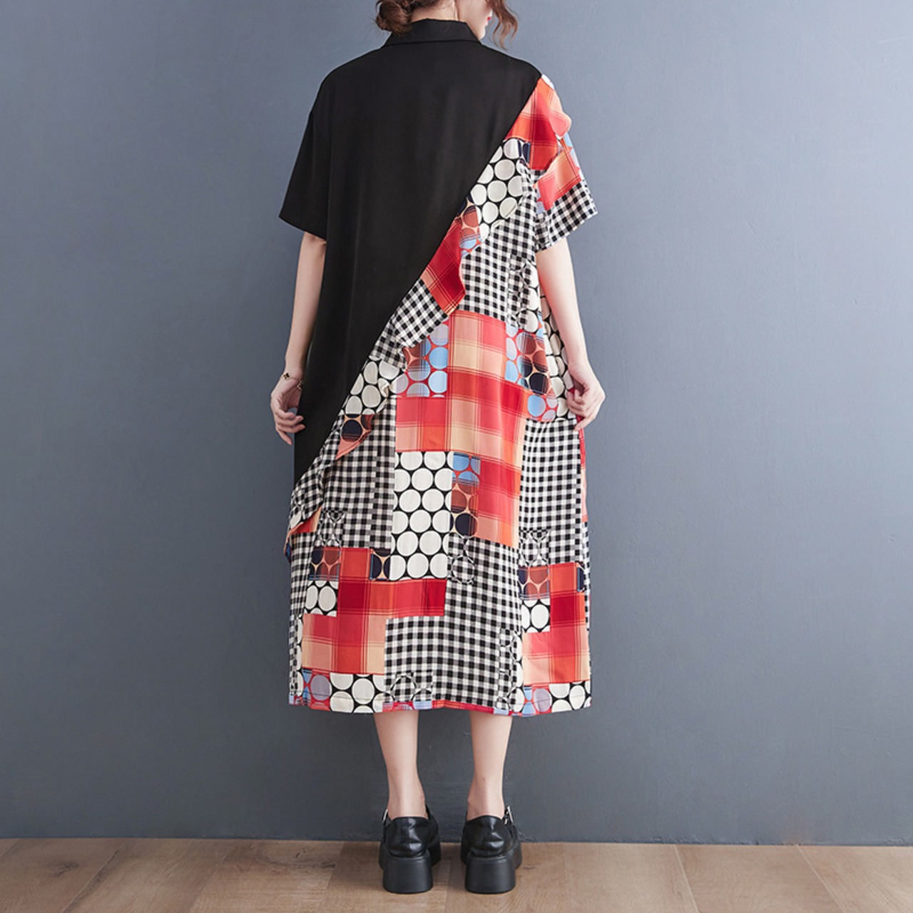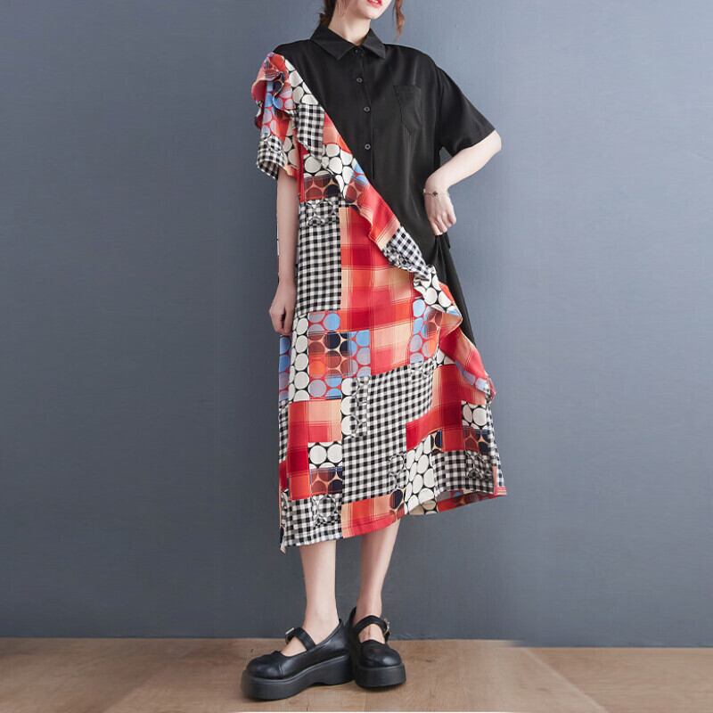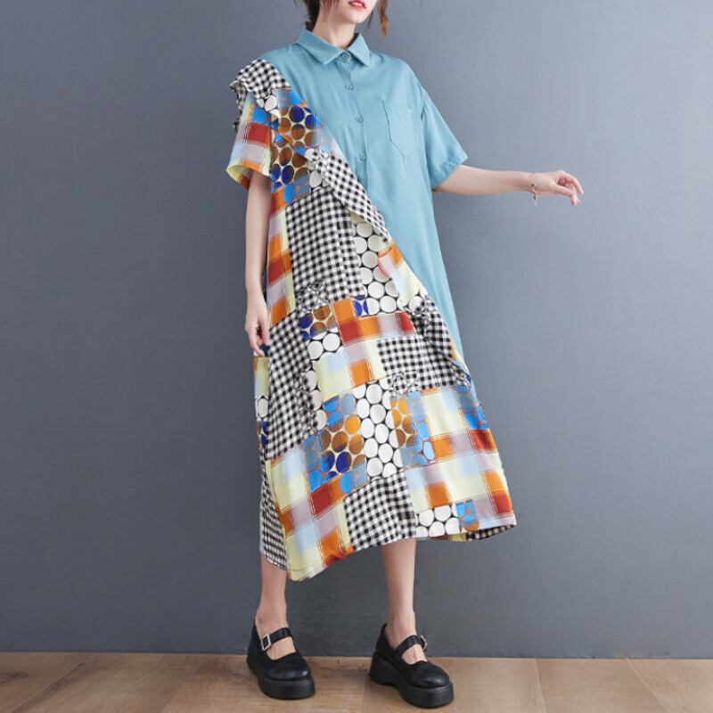 ワンピース ミモレ丈 袖あり 半袖 フリル 切り替えデザイン 大人可愛い きれいめ シンプル カジュアル 大人 上品 おしゃれ かっこいい レトロ 個性的 エレガント モダン チェック柄 ドット柄 ストライプ 春 夏 10代 20代 30代 40代 レディース デート お出かけ 女子会 休日 パーティー 韓国系 オルチャン ファッション コーデ スタイル モテ 体型カバー トレンド S M L XL 2XL ワンサイズ 黒 ブラック ブルー