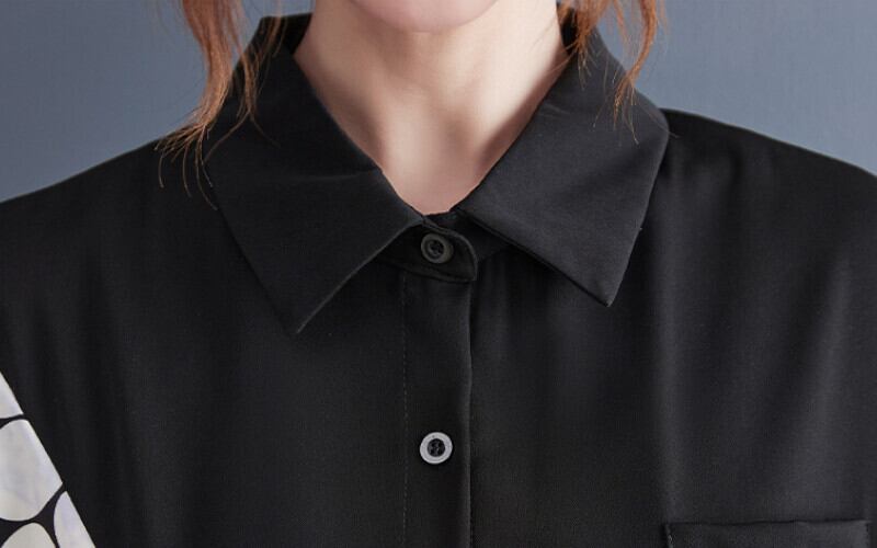 斜めの切替デザインが印象的なシャツワンピース。