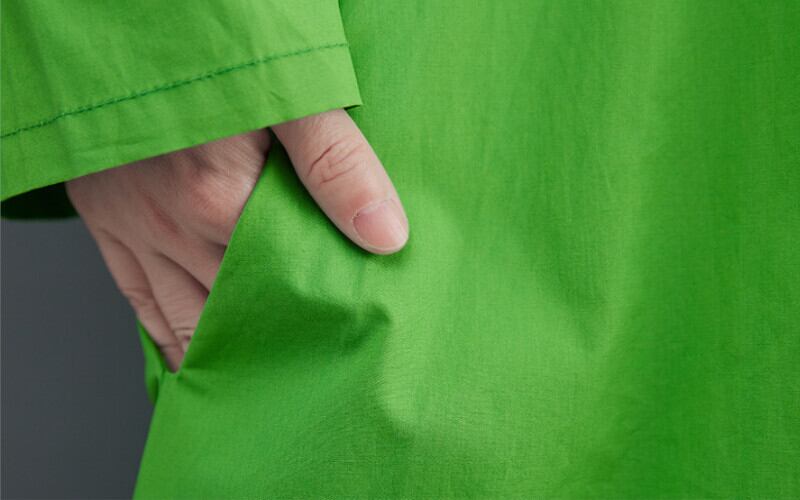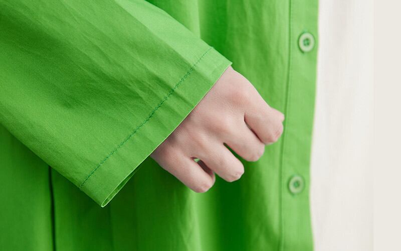 たっぷりなボリュームとロング丈斜めの切替デザイン。