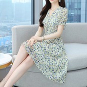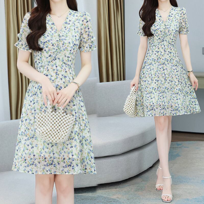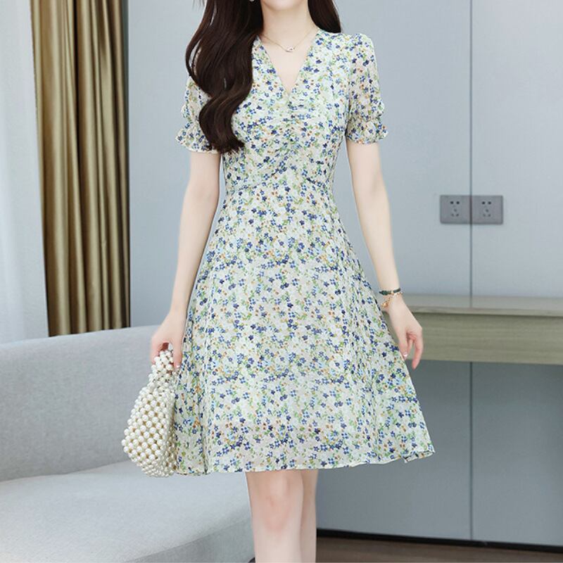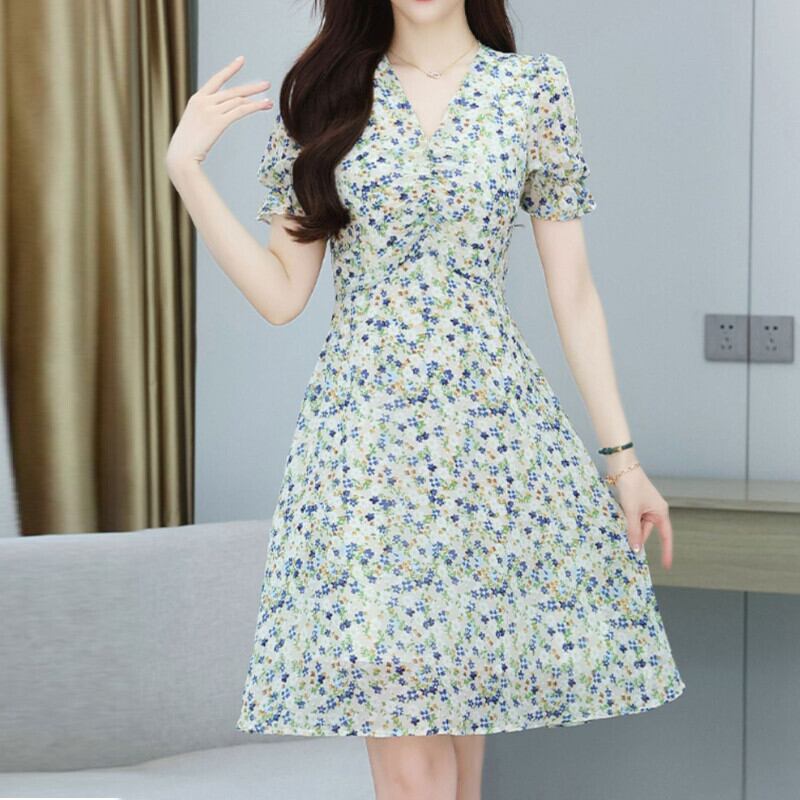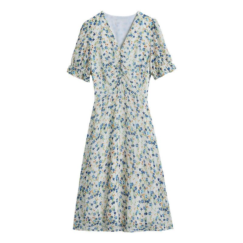 ワンピース 膝上 袖あり 半袖 Aライン ハイウエスト 大人可愛い きれいめ シンプル カジュアル 大人 上品 おしゃれ かっこいい レトロ 個性的 エレガント モダン 花柄 春 夏 10代 20代 30代 40代 レディース デート お出かけ 女子会 休日 リゾート 旅行 着回し 韓国系 オルチャン ファッション コーデ スタイル モテ 体型カバー トレンド M L XL 2XL 青 ブルー