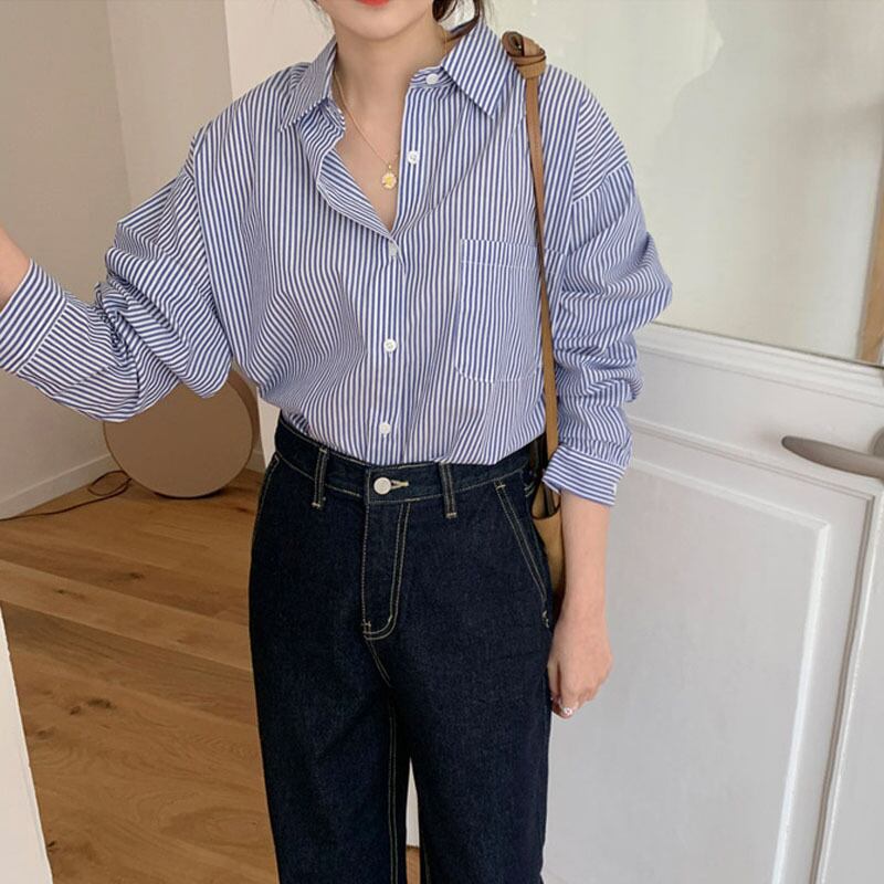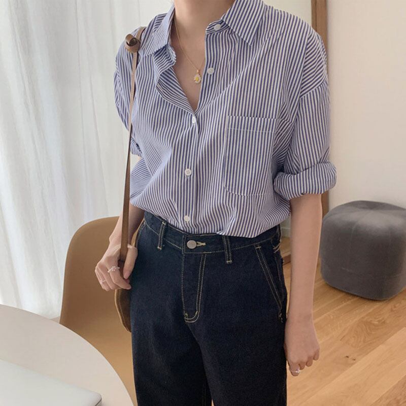 トップス シャツ ブラウス 袖あり 長袖 襟付き かわいい 大人可愛い きれいめ シンプル カジュアル 大人 おしゃれ お洒落 かっこいい レトロ 大人可愛い 大人女子 こなれ感 ラフ マニッシュ クール モード系 主役級 存在感 抜け感 フェミニン 爽やか 大人カジュアル オフィスカジュアル オフィカジ 柄 ストライプ 春 夏 秋 冬 オールシーズン シーズンレス 10代 20代 30代 40代 レディース 女性用 ママ オフィス ビジネス OL 通勤 学生 通学 デート お出かけ 公園デビュー