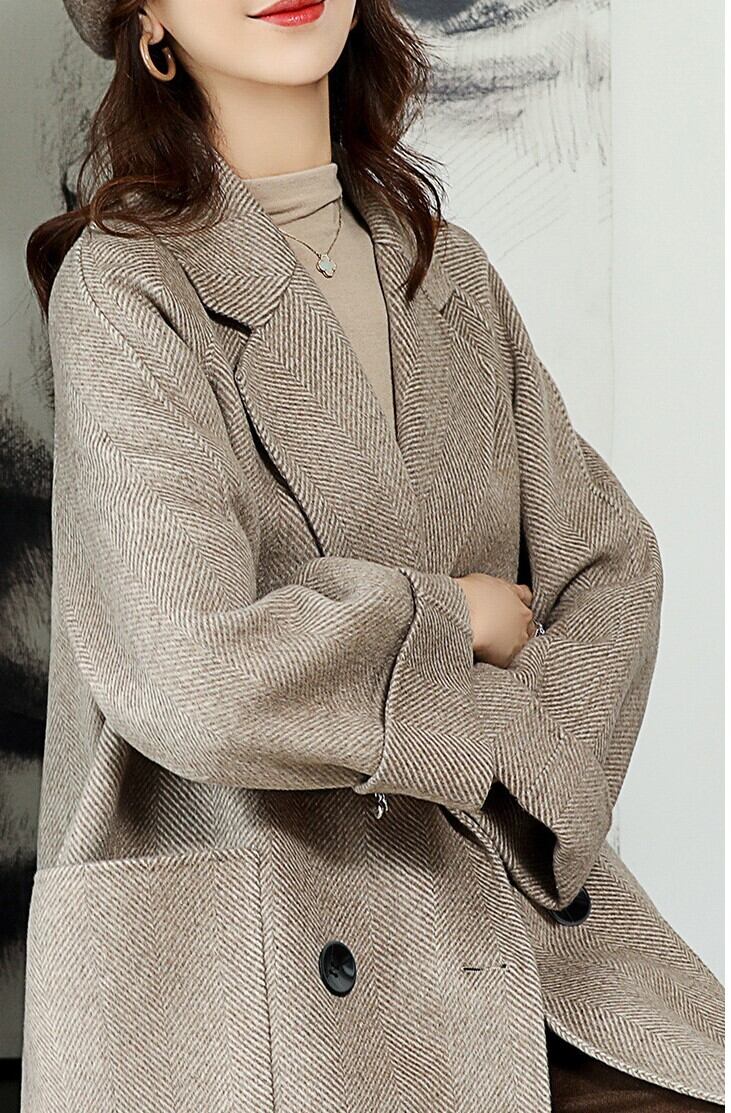 秋冬人気のくすみカラーがトレンドのチェスターコート。