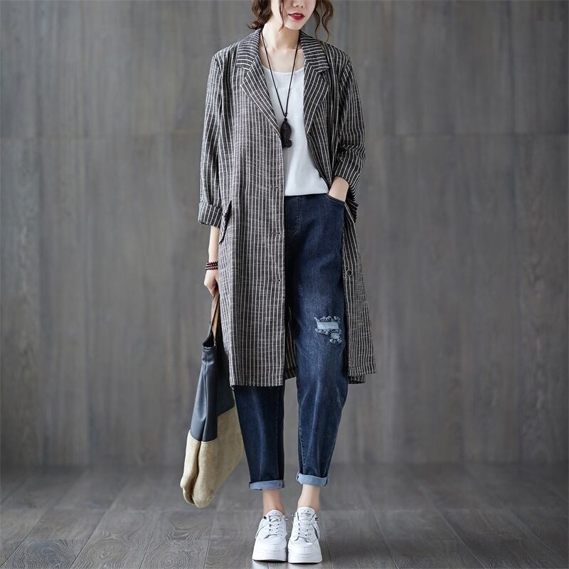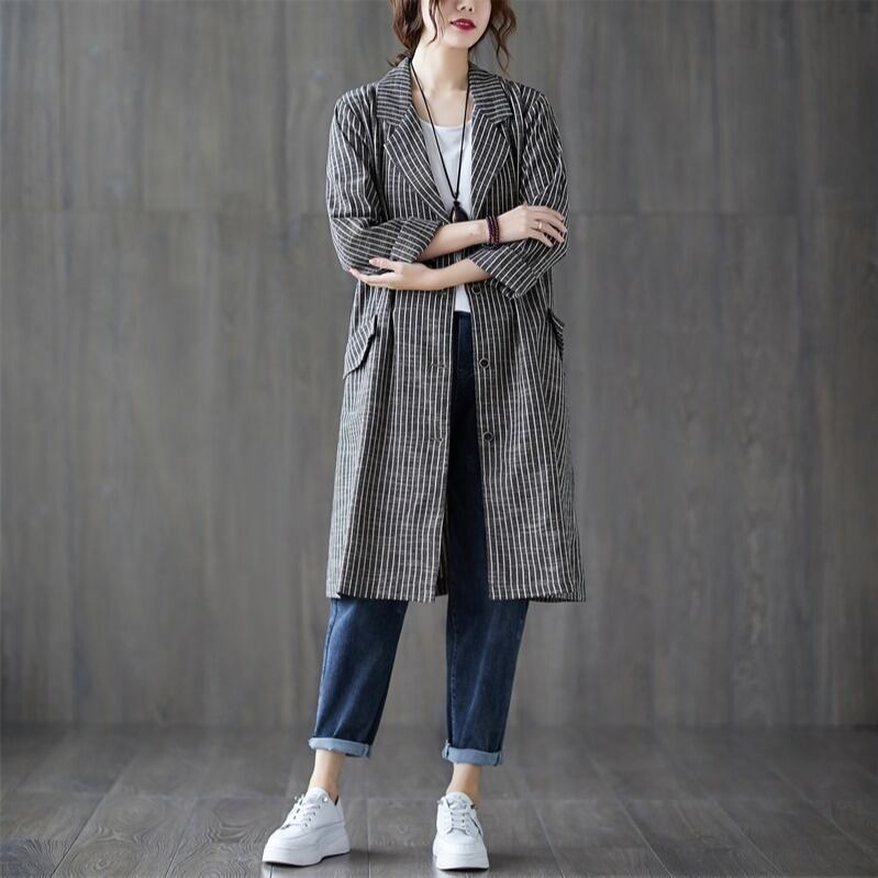 レディース ジャケット 上着 テーラードジャケット コート ミドル丈 ラペルネック ストライプ インスタ映え 高見え 美スタイル 可愛い かわいい 韓国 かっこいい カジュアル 大人 上品 シンプル クラシック エレガント こなれ感 ラグジュアリー おしゃれ 人気 個性的 モード系 フェミニン ストリート モテ 華やか 主役級 クール スタイリッシュ 普段使い 女子会 デート オフィス 通勤 お出かけ 旅行 春 秋 冬 OL 10代 20代 30代 40代 50代 ママ M L XL 2XL