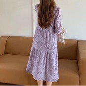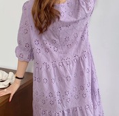 ワンピース 上着 人気 おすすめ おしゃれ お洒落 激安 安い 送料無料 プチプラ ボート ネック ふわふわ パフスリーブ ふんわり Aライン 膝丈 無地 柄 花柄 コットン 綿 可愛い かわいい 韓国 シンプル カジュアル きれいめ 春 スプリング サマー 夏 ストリート レディース 女性用 20代 30代 S M 紫 パープル ベージュ オフホワイト パステルカラー 大人カラー 春カラー デート フェミニン