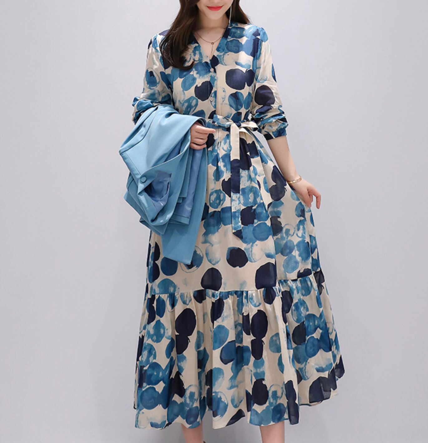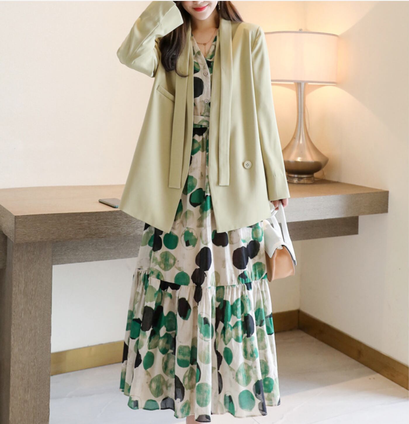 ワンピース 上着 人気 おすすめ おしゃれ お洒落 激安 安い 送料無料 プチプラ セットアップ 長袖 ロング Vネック ふんわり Aライン 柄 リボン ポリエステル 可愛い かわいい 韓国 きれいめ 大人 上品 フォーマル 春 スプリング サマー 夏 秋 オータム 結婚式 レディース 女性用 20代 30代 S M L XL 2XL 青 ブルー 緑 グリーン パステルカラー 大人カラー バイカラー 春カラー デート フェミニン