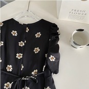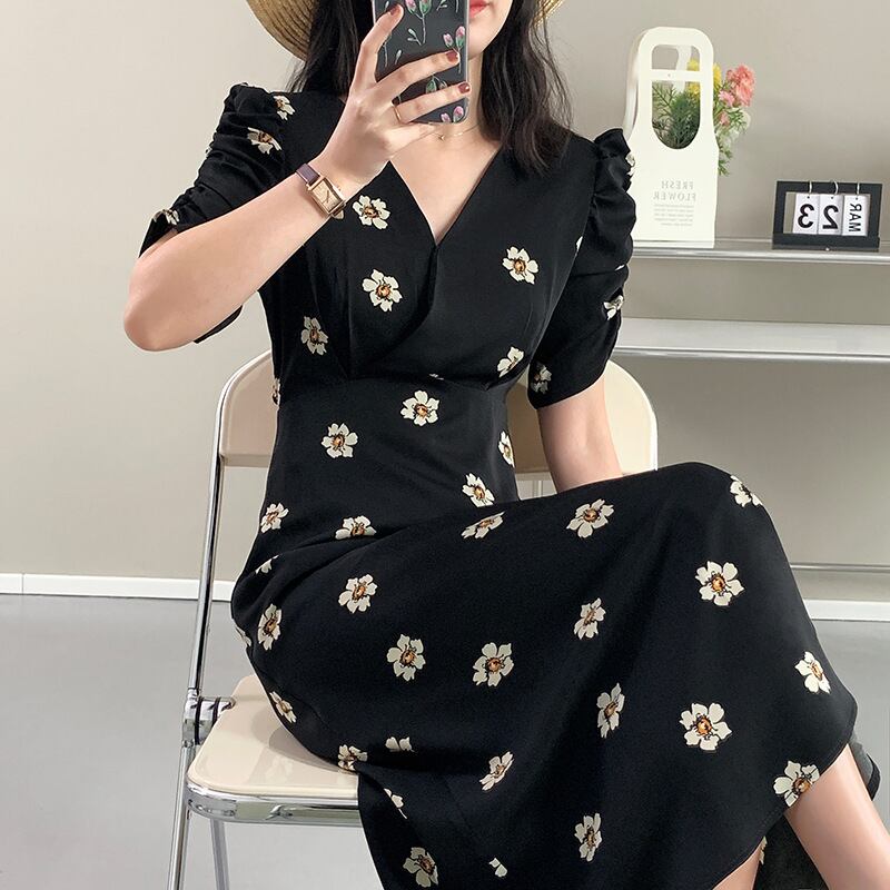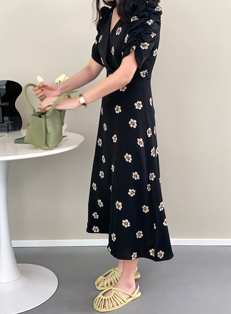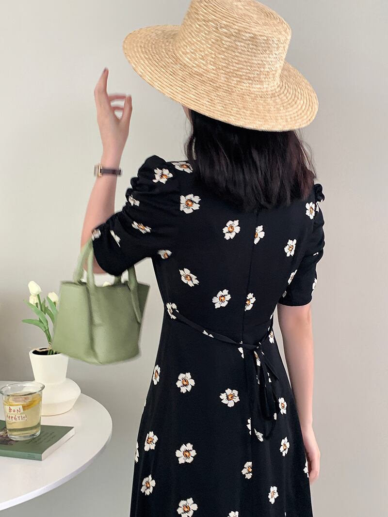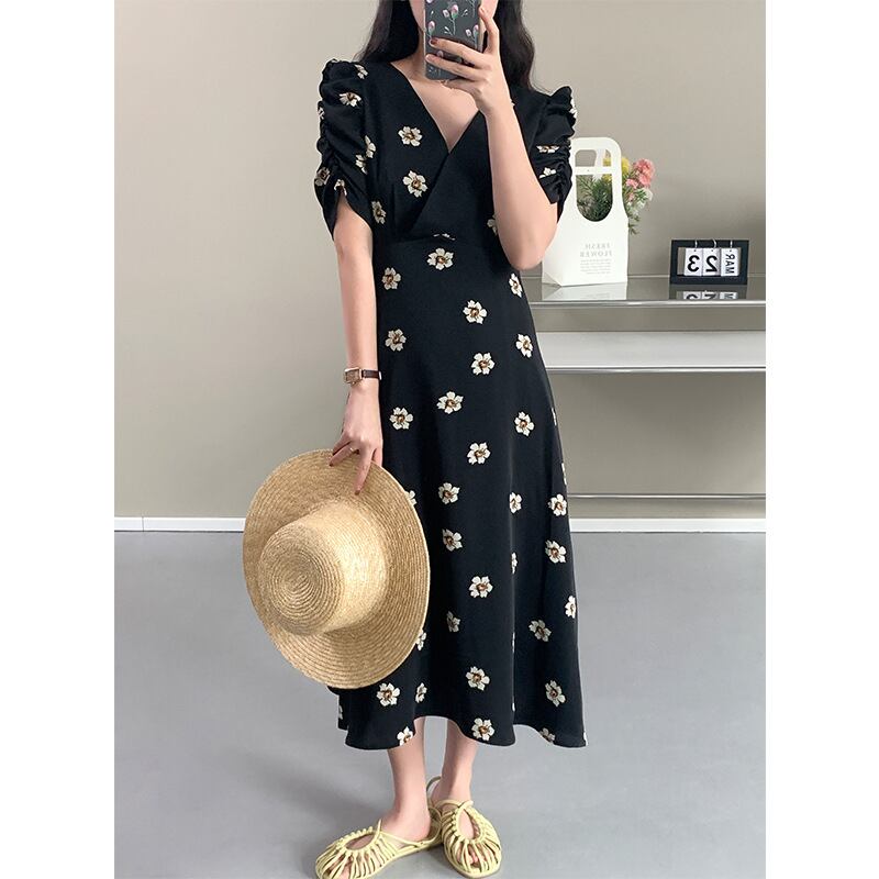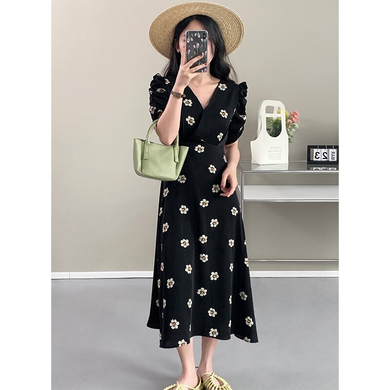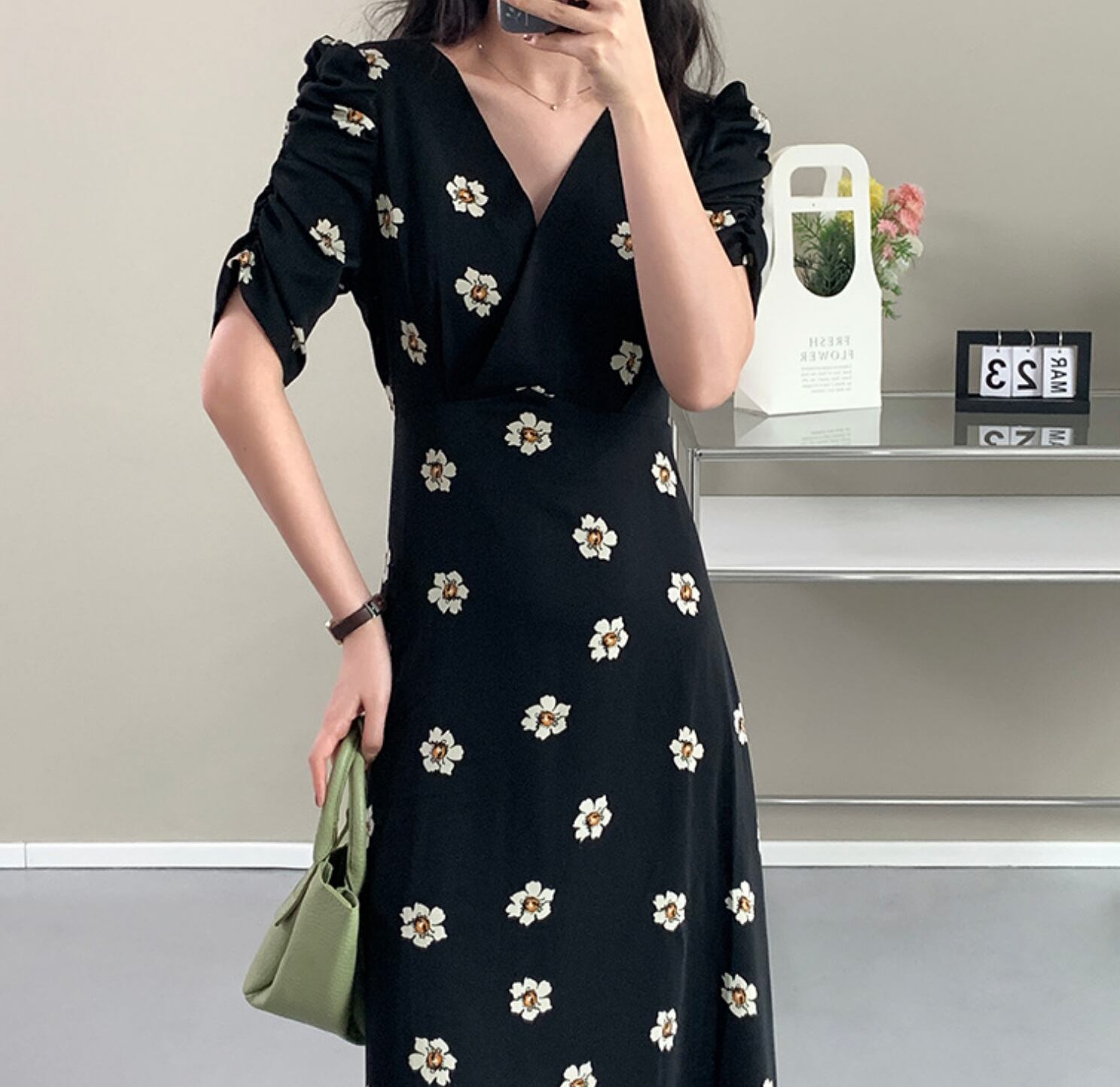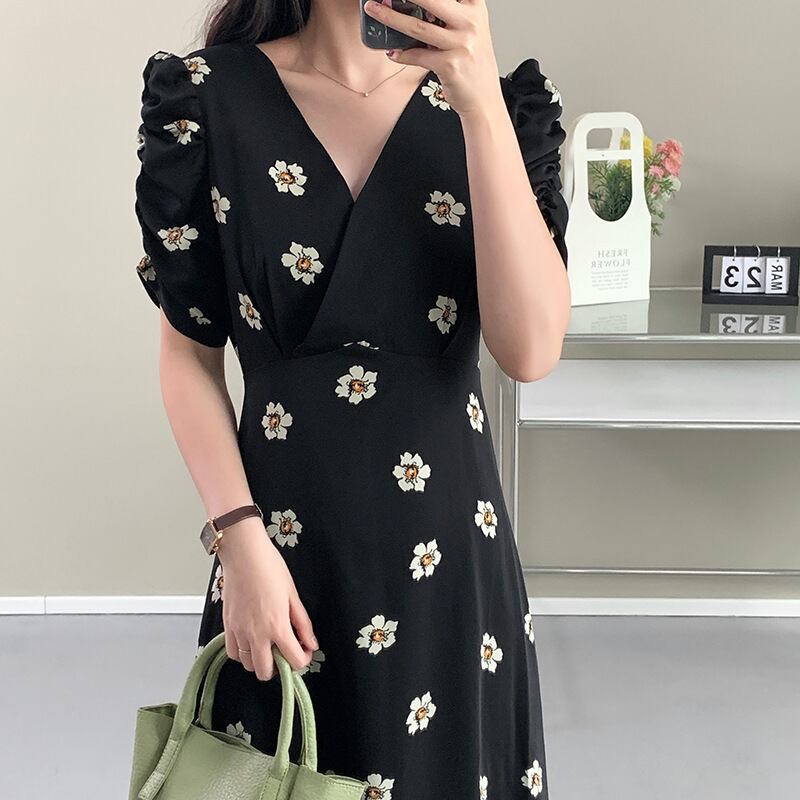 ワンピース 上着 人気 おすすめ おしゃれ お洒落 激安 安い 送料無料 プチプラ 半袖 ふわふわ パフスリーブ ふんわり Aライン 柄 花柄 可愛い かわいい 韓国 シンプル カジュアル きれいめ 大人 上品 春 スプリング サマー 夏 レディース 女性用 20代 30代 M L 黒 ブラック 大人カラー バイカラー モノトーン 春カラー デート フェミニン お出かけ エレガント