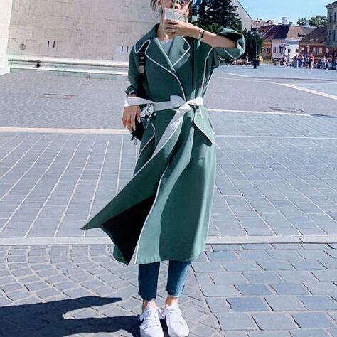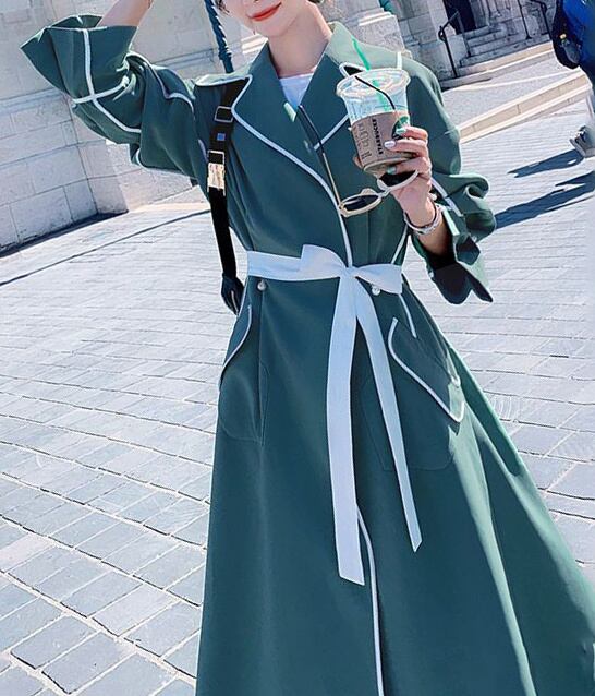 アウター 上着 コート ラップコート ロングコート Aライン 膝下丈 ミモレ丈 ロング丈 フレア 無地 襟付き パイピング 体型カバー スタイルアップ 可愛い かわいい きれいめ 大人 上品 エレガント 抜け感 こなれ感 シンプル ナチュラル ラフ カジュアル フェミニン スタイリッシュ シック 春 スプリング 春先 秋 オータム レディース 女性用 ママ 低身長 40代 50代 3XL 4XL 大きいサイズ ゆったり ゆる 緑 グリーン 大人カラー バイカラー
