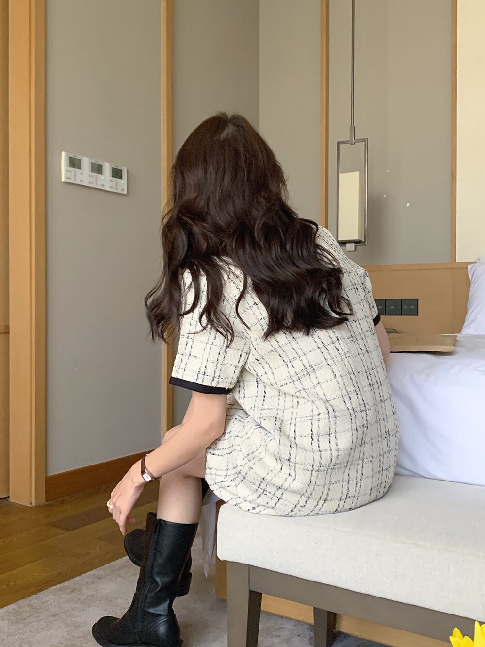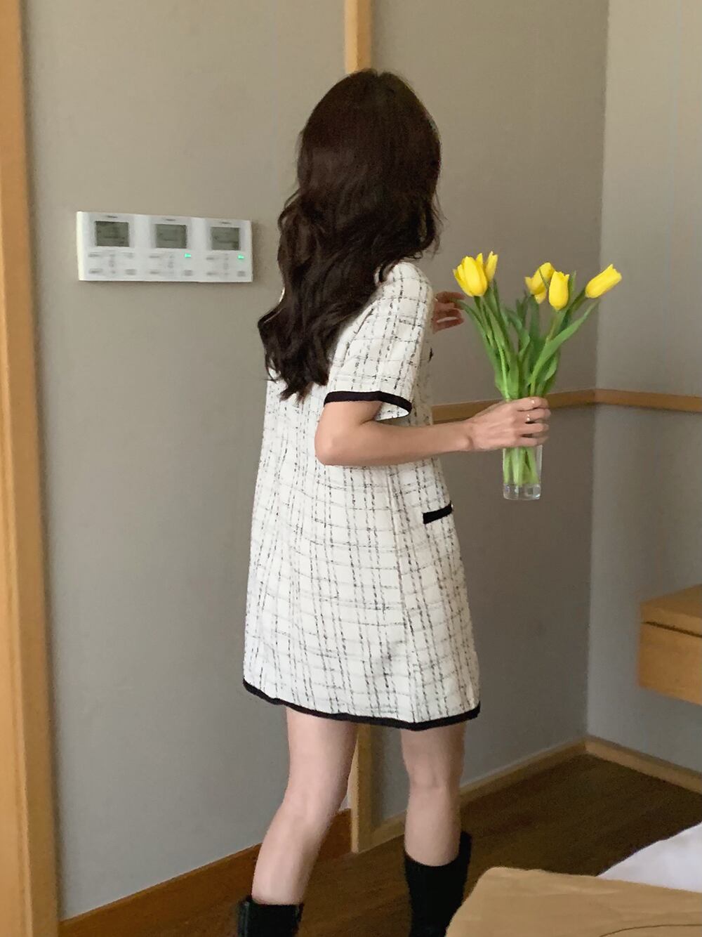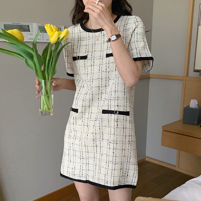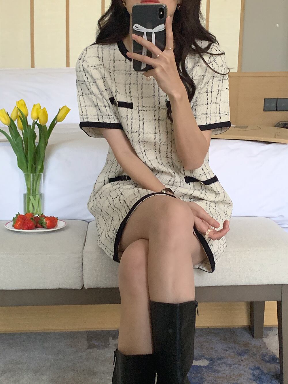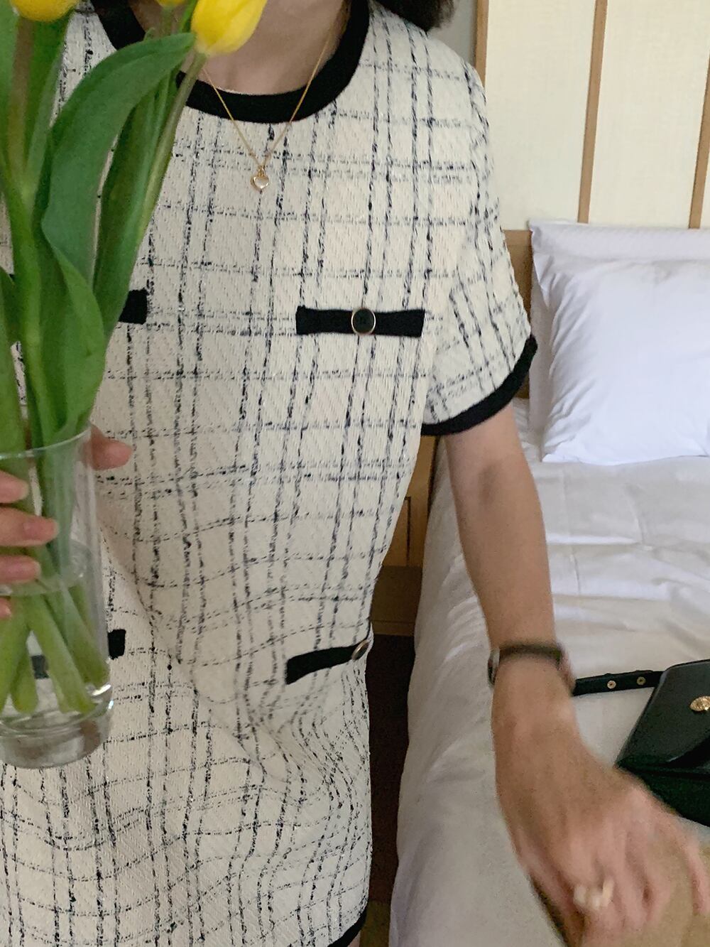 ワンピース 上着 人気 おすすめ おしゃれ お洒落 激安 安い 送料無料 プチプラ 半袖 ラウンドネック 丸首 Aライン ミニスカート 柄 ツイード 可愛い かわいい 韓国 シンプル きれいめ 大人 上品 フォーマル 春 スプリング サマー 夏 結婚式 レディース 女性用 20代 30代 フリーサイズ 大きめ ゆったり 白 ホワイト 黒 ブラック くすみカラー 大人カラー バイカラー モノトーン 春カラー デート フェミニン