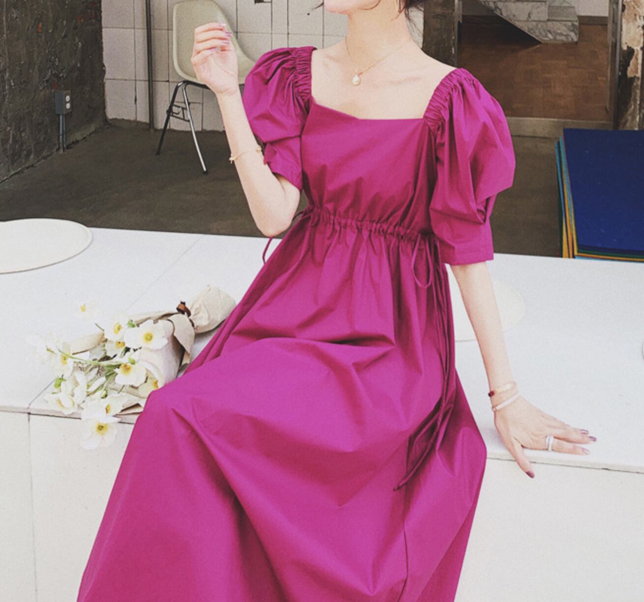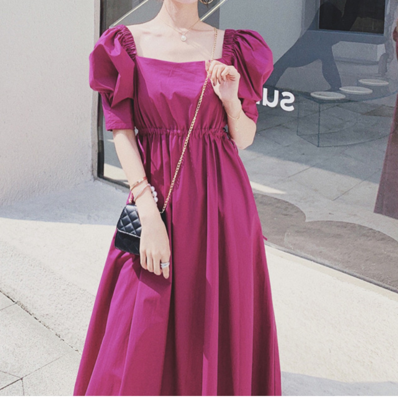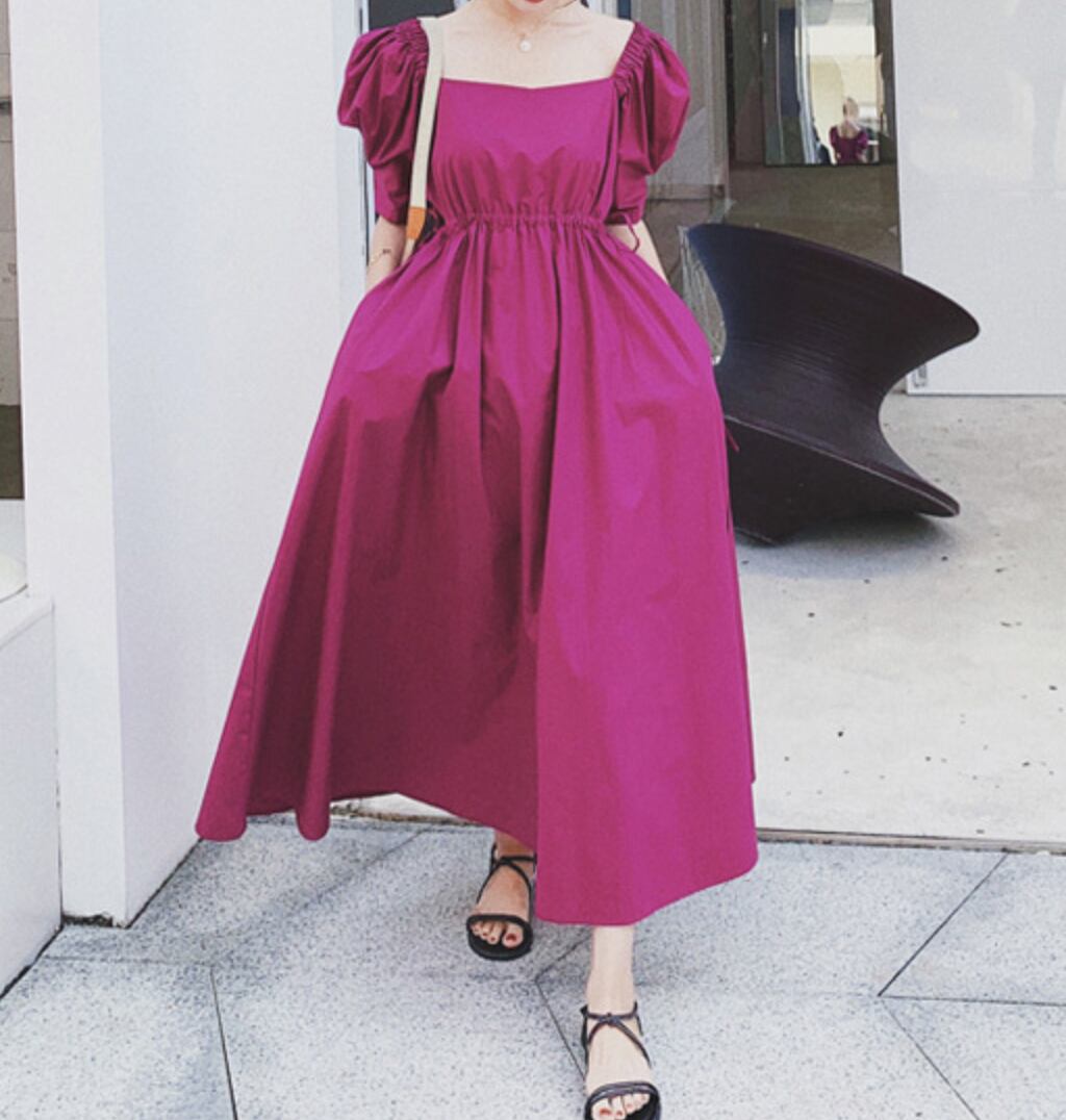 ワンピース 上着 人気 おすすめ おしゃれ お洒落 激安 安い 送料無料 プチプラ 半袖 スクエアネック ふわふわ パフスリーブ ふんわり Aライン 無地 ポリエステル 可愛い かわいい 韓国 シンプル カジュアル きれいめ 大人 上品 春 スプリング サマー 夏 レディース 女性用 20代 30代 S M L XL 黒 ブラック 紫 パープル 大人カラー モノトーン 秋カラー デート フェミニン