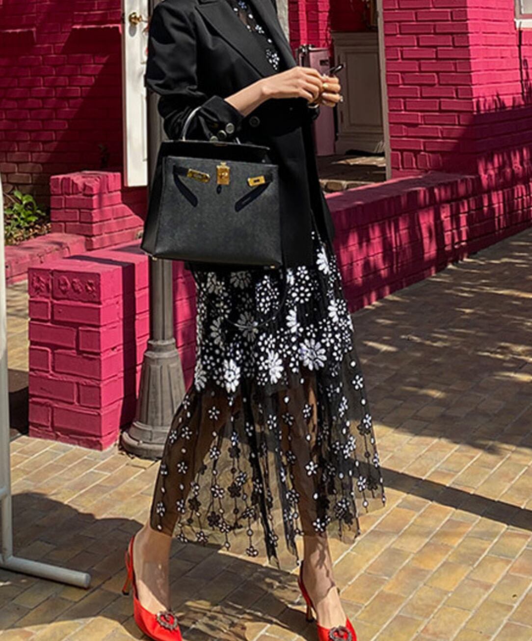 フラワー刺繍がお洒落でカジュアルにもフォーマルなシーンにも大活用する一枚。