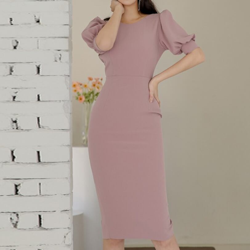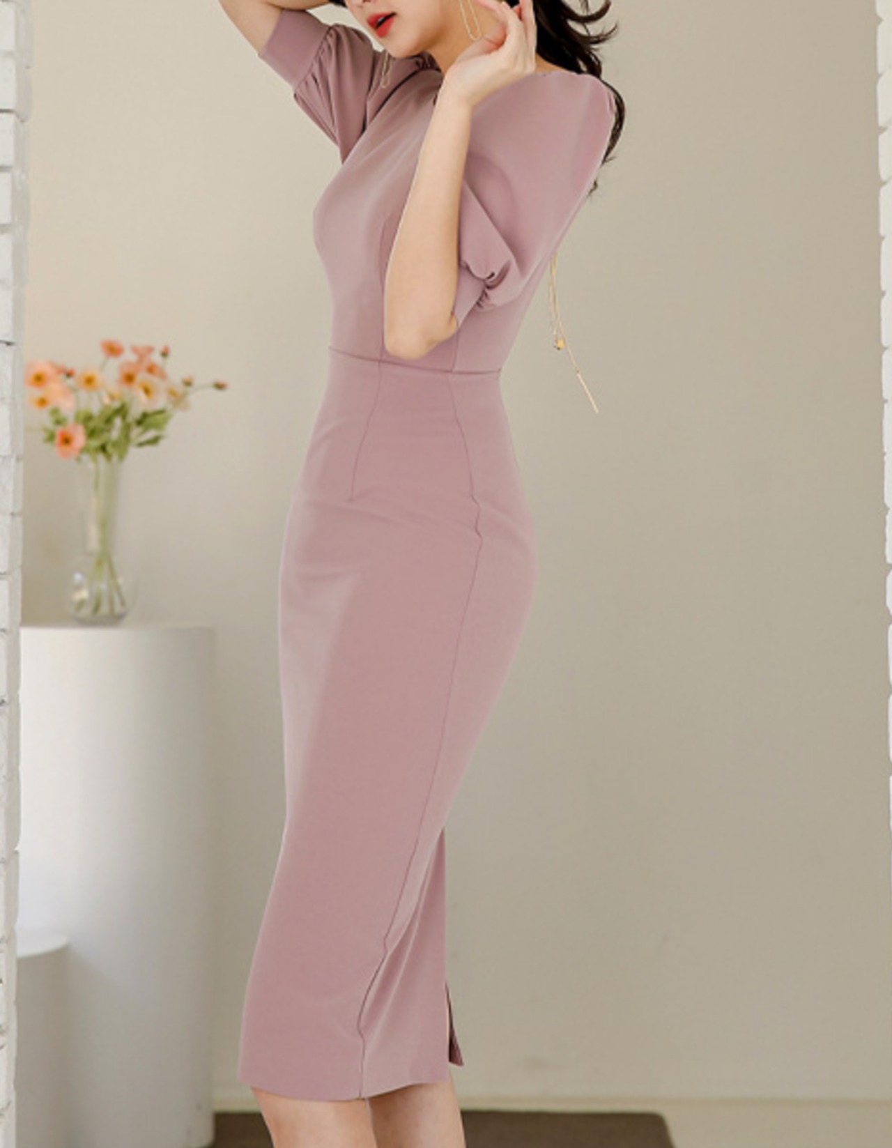 ワンピース 上着 人気 おすすめ おしゃれ お洒落 激安 安い 送料無料 プチプラ 半袖 ラウンドネック 丸首 タイト ふわふわ パフスリーブ ふんわり 膝丈 ミニスカート 無地 ポリエステル 可愛い かわいい 韓国 シンプル きれいめ 大人 上品 フォーマル 春 スプリング サマー 夏 結婚式 レディース 女性用 20代 30代 S M L XL 桃色 ピンク パステルカラー くすみカラー 大人カラー 春カラー デート フェミニン