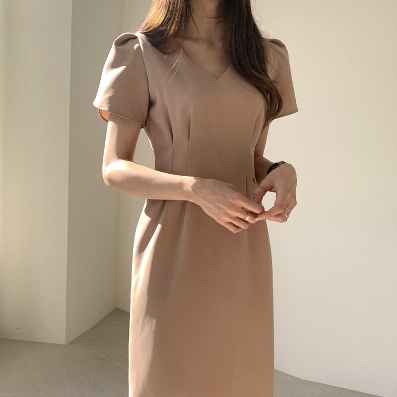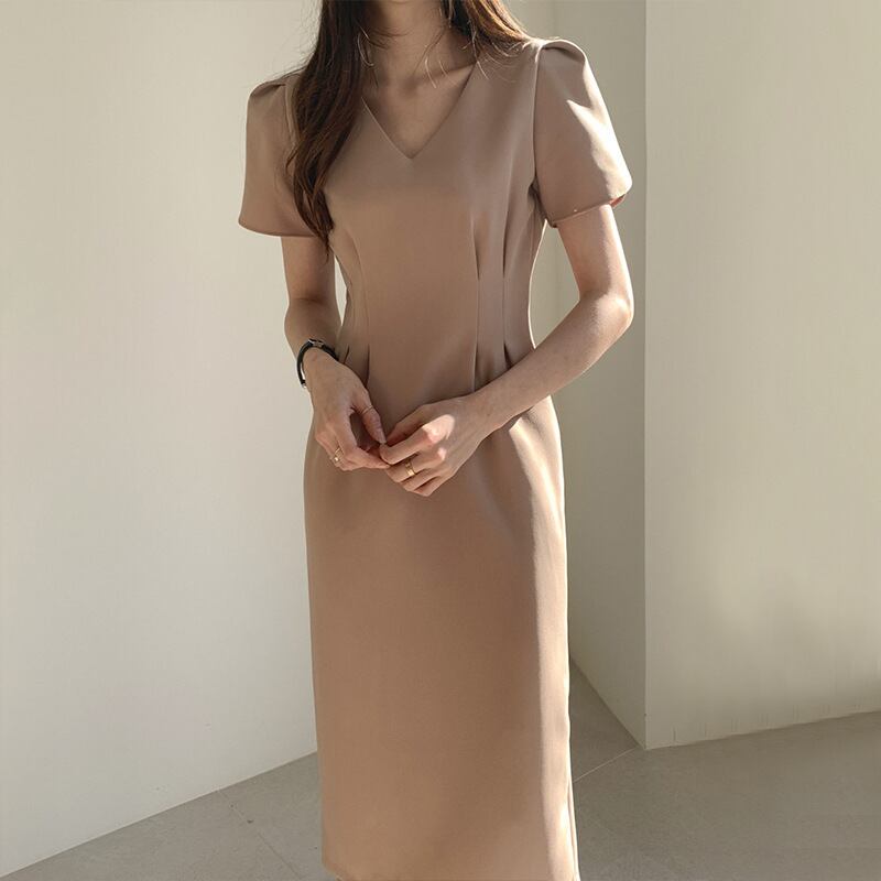 ワンピース 上着 人気 おすすめ おしゃれ お洒落 激安 安い 送料無料 プチプラ 半袖 Vネック タイト 膝丈 ミニスカート 無地 ポリエステル 可愛い かわいい 韓国 シンプル きれいめ 高品質 大人 上品 フォーマル 春 スプリング サマー 夏 結婚式 レディース 女性用 20代 30代 S M L 黒 ブラック カーキ くすみカラー 大人カラー モノトーン 秋カラー フェミニン エレガント