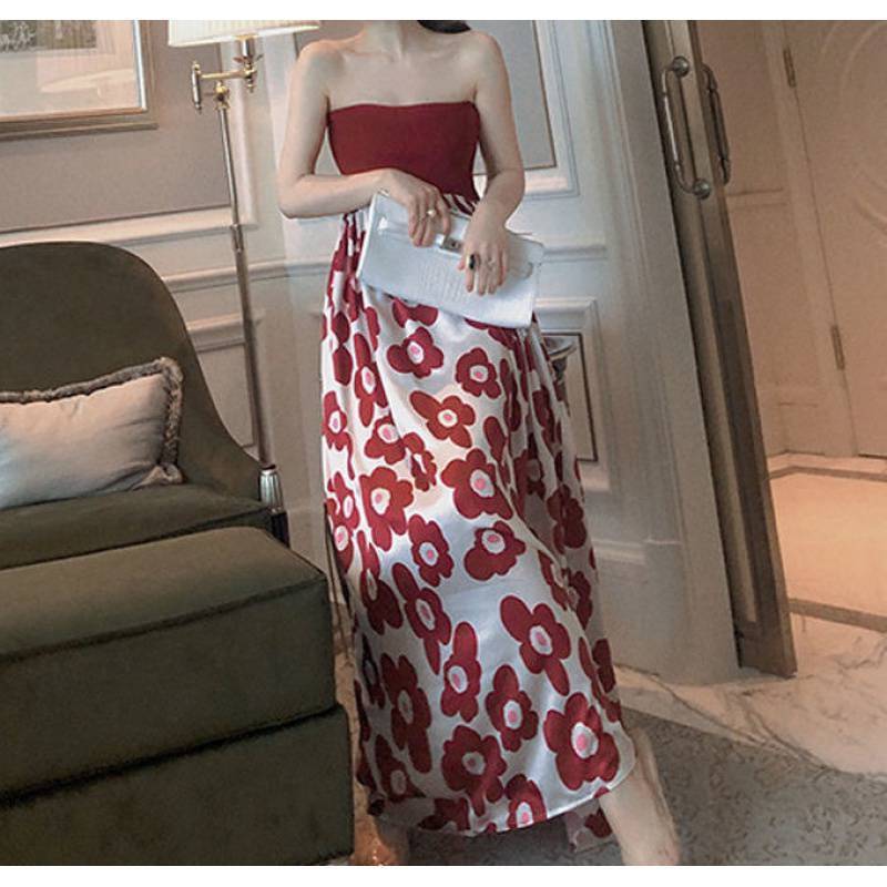 大きな花柄のプリントがお洒落なチューブトップワンピース。