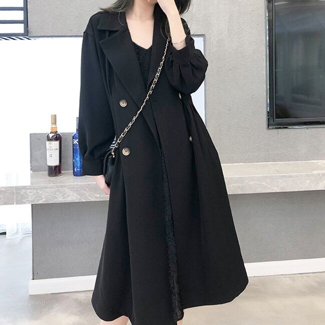 チェスターコート オーバー ロングコート アウター ミドル丈 長袖 フレア パフスリーブ ダブルブレスト ポケット ボタン 無地 温かい 防寒 大人 上品 おしゃれ ファッション こなれ感 ルーズ 冬 ウィンター 秋 オータム カジュアル お出かけ デート 通勤 レディース 女性用 ママ 40代 20代 30代 大人カラー 秋カラー カラバリ ブラック