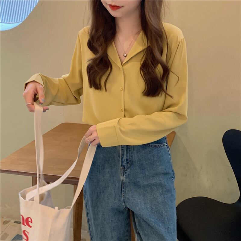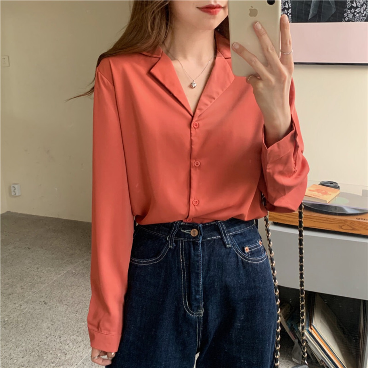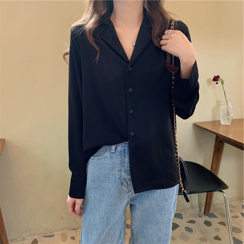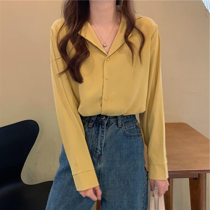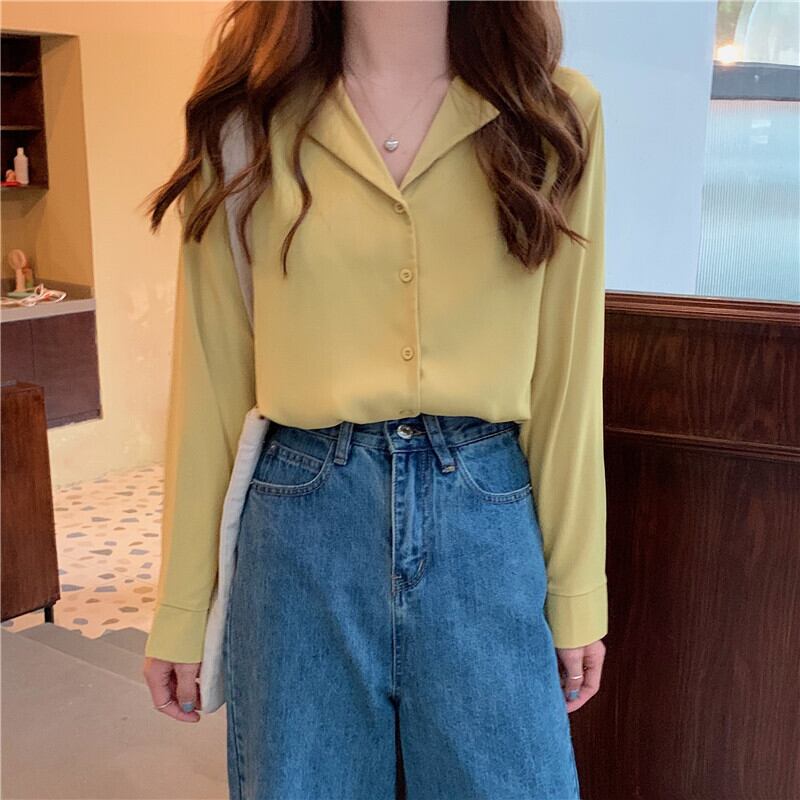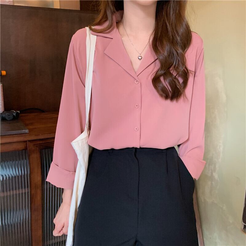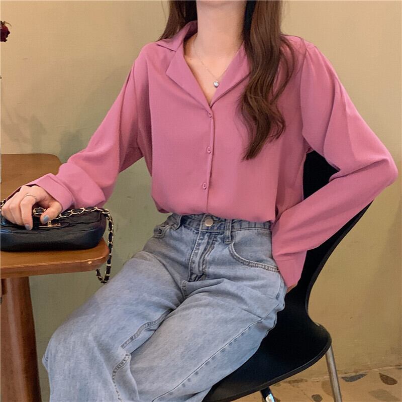 カラーバリエーション豊富な長袖シフォンシャツ。