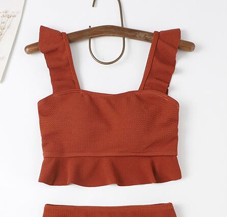 伸縮性があり、着心地抜群。フリルデザインがキュートです。